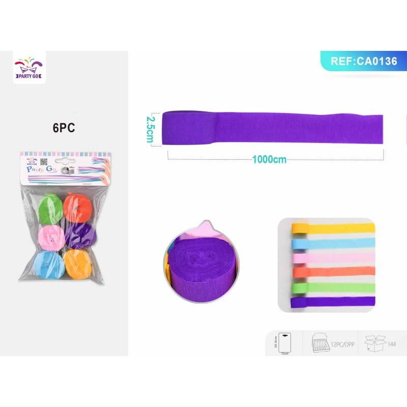 Hartie creponata petrecere PartyGo, 2.5cm x 10m, hartie, diverse culori, CA0136, set 6 buc