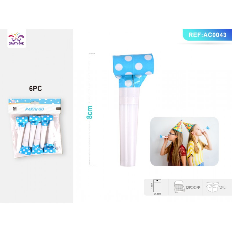 Trompeta petrecere PartyGo, 23cm, buline albe, bleu, AC0043, set 6 buc