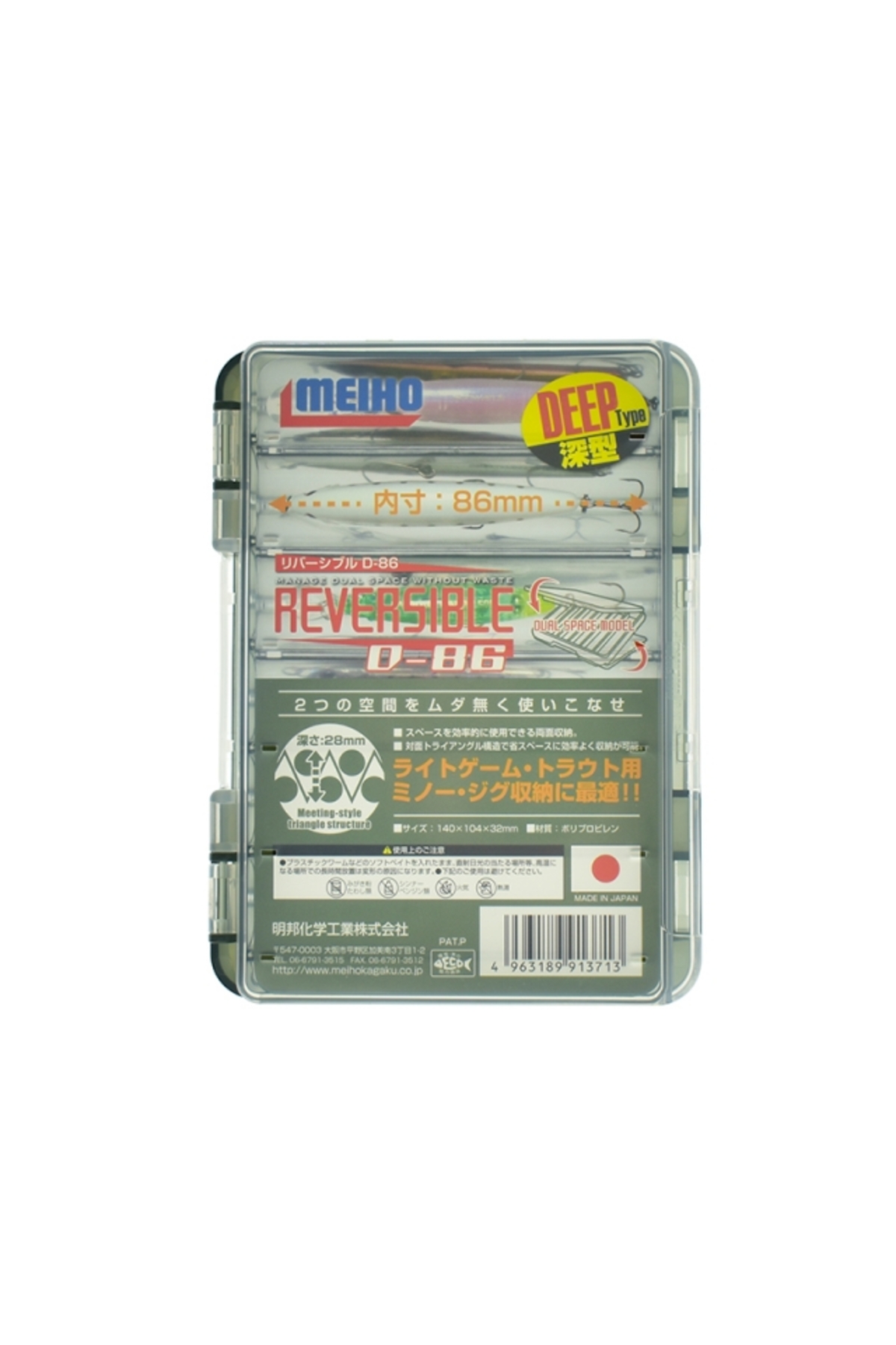 Liderul absolut in domeniul cutiilor si gentilor de pescuit Meiho este sinonim cu calitatea japoneza de top. Cutiile Meiho sunt facute din plastic de ultima generatiefoarte rezistent tratat UV pentru a va proteja nalucile de efectele daunatoare ale soarelui echipate cu un sistem revolutionar de balamale care sunt practic indestructibile. Toate cutiile Meiho sunt concepute astfel incat sa se integreze in sistemul lor ingenios de depozitare astfel ca ficare din cutiile mai mici poate fi integrata cu usurinta in cutiile Meiho intr-un loc special proiectat pentru ea. Design futurist spatii de depozitare unice proiectate si fabricate cu o precizie milimetrica astea sunt doar cateva din caracteristicile gamei de cutii Meiho. Pentru oricine a avut placerea de a folosi o astfel de cutie un lucru este clar: atunci cand cumperi un produs Meiho il cumperi pentru o viata ! CARACTERISTICI: *Dimensiuni: 14 x 10.4 x 3.2cm *Cutie cu doua compartimente unul pe fiecare parte *Capacitate: 12 naluci cu lungimea maxima de 8.6cm *Dispune de gauri speciale care ajuta la ventilarea cutiei