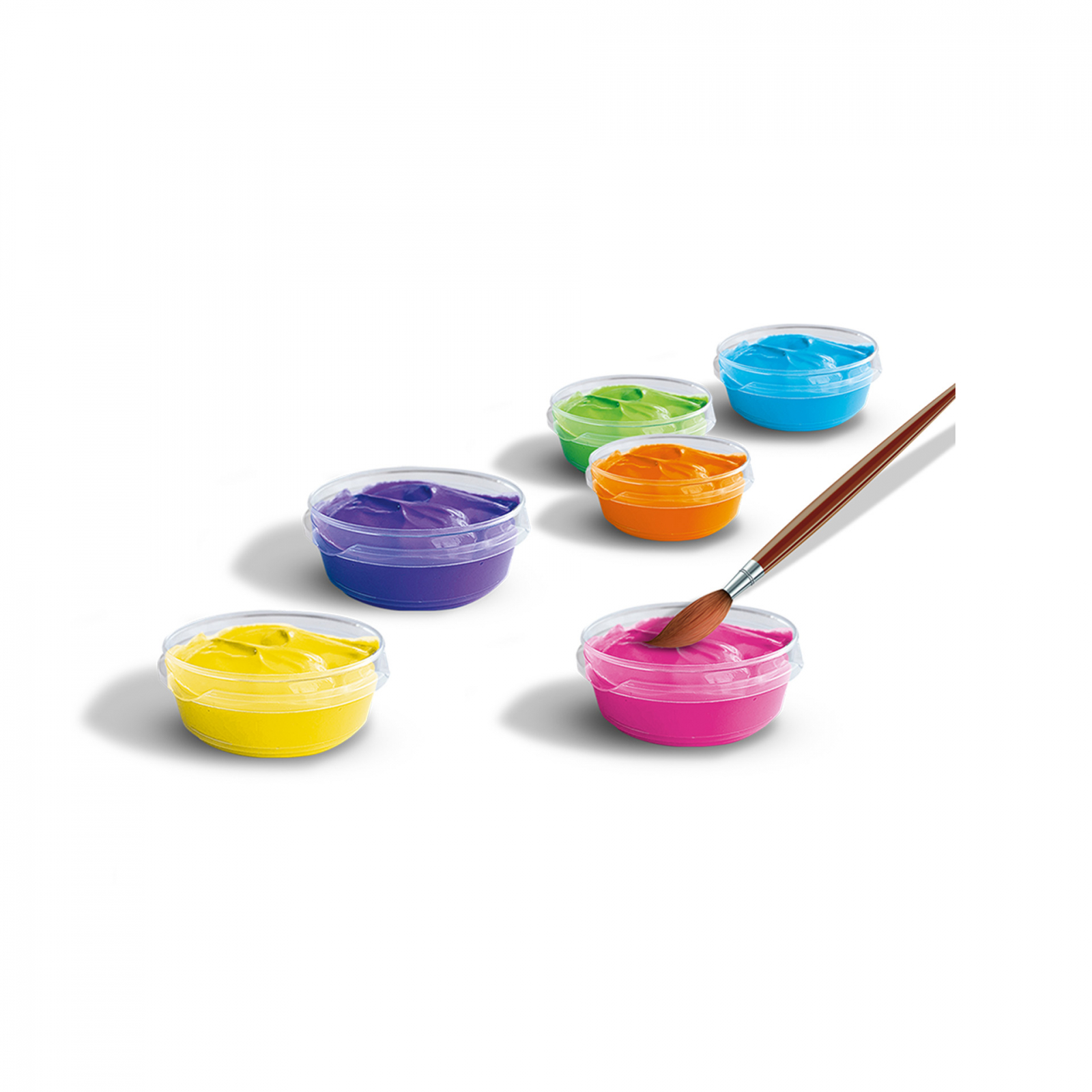 Set de acuarele pasta in culori trendy pentru copii (guase).. Acuarela pasta este cunoscuta pentru calitatea sa si mai ales, pentru culori vibrante care asigura o buna acoperire, cu strat gros. Acest set consta in 6 culori cu care poti realiza lucrari deosebite. Amesteca intre ele culorile, pentru a obtine si mai multe nuante. Acuarela este usor de spalat de pe majoritatea materialelor textile.