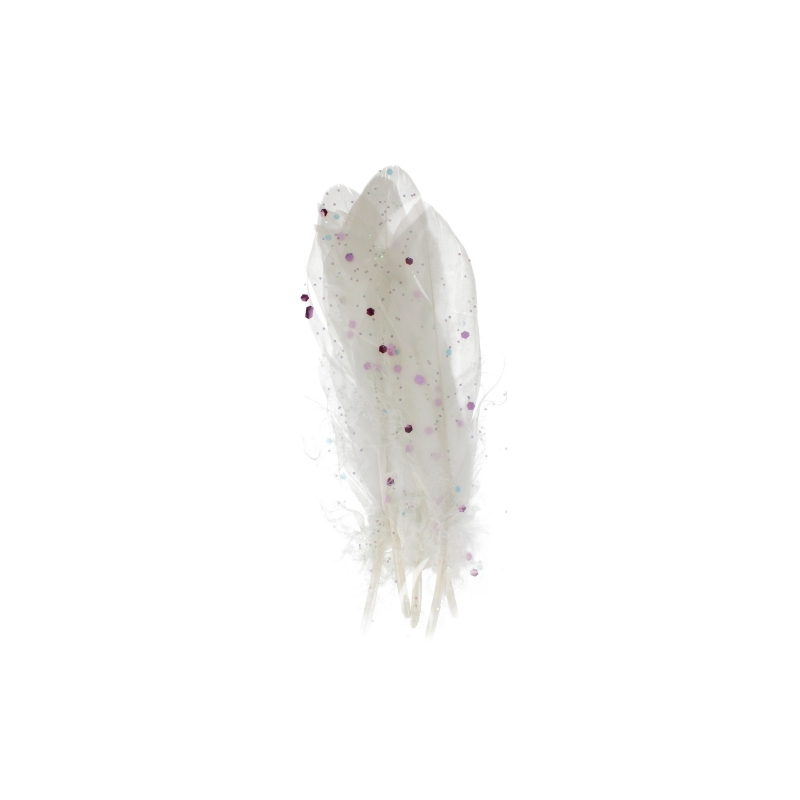 Conținut pachet: 6 pene albe decorate cu confetti.