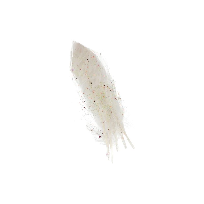 Conținut pachet: 6 buc pene albe decorate cu sclipici.