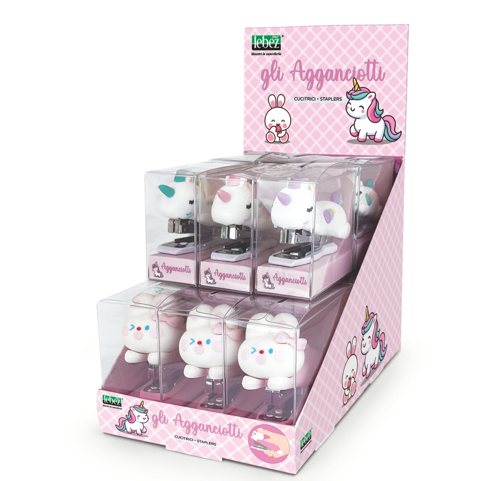 Capsator de lux in pachet suspendat, Unicorn si Iepure._x000D_ Impachetate individula in blistere de agatat._x000D_ Capsator mic Unicorn: 3.5 x 6.6 x 7.6 cm._x000D_ Capsator mare Iepure: 4.2 x 8.4 x 9.5 cm._x000D_ Capsator mic Unicorn, disponibil in 3 culori: mov, turcoaz, roz._x000D_ _x000D_ ATENTIE! Pretul afisat este pentru o bucata, numarul de bucati/display este informativ.