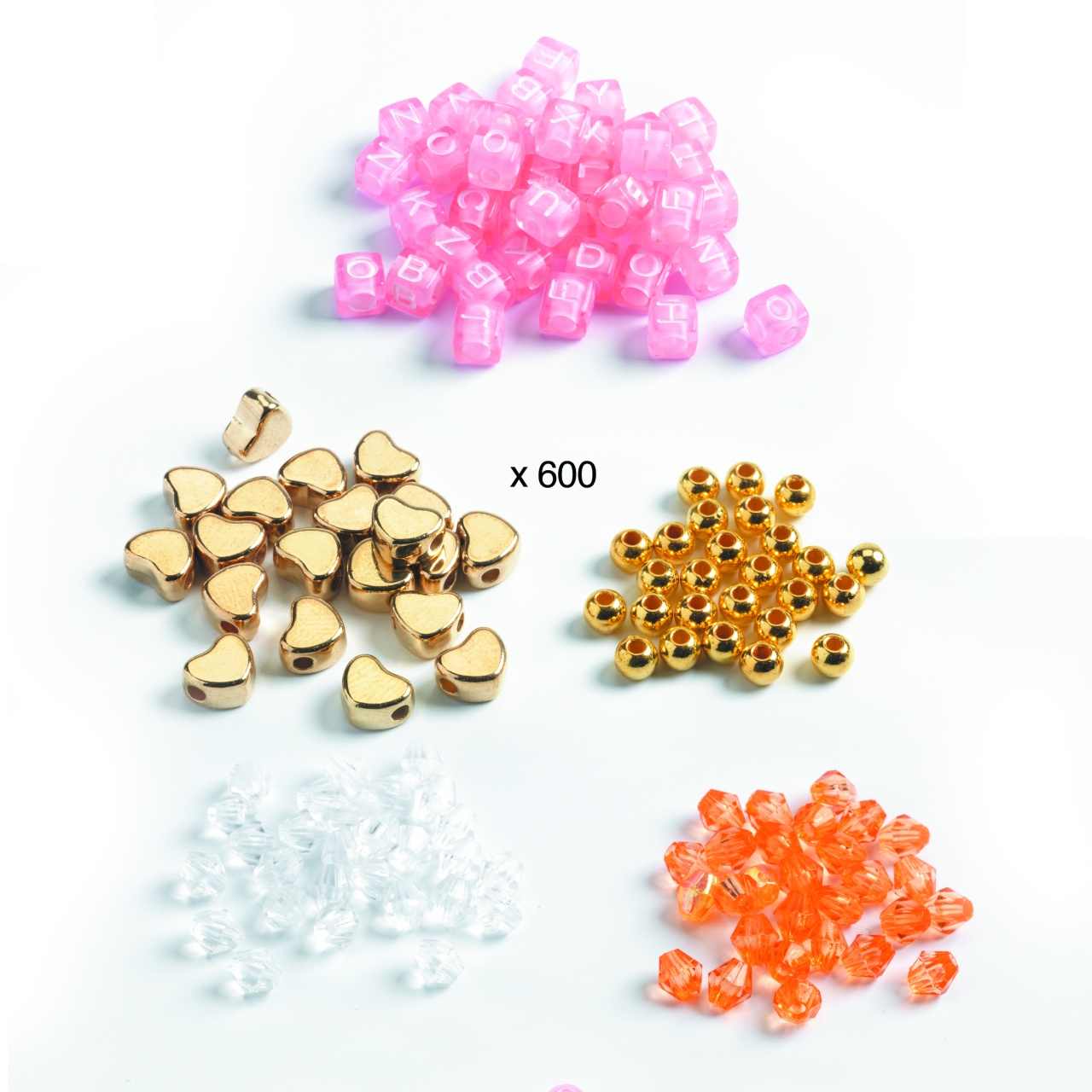 Set creativ Coliere și brățări cu mesaje – 1.000 de mărgele pentru creativitate fără limite Descoperă un set complet pentru micii artiști pasionați de bijuterii! Cu 1.000 de mărgele colorate și aurii , acest kit le oferă copiilor libertatea de a crea brățări și coliere unice, personalizate cu mesaje sau nume.