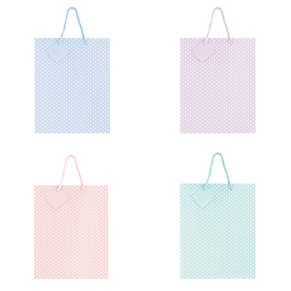 Sacosa Pastel cu buline, din hartie cu maner din snur, 17.8 x 23 x 9.8 cm (20 buc/display), copii varsta 6 ani+,8 ani+