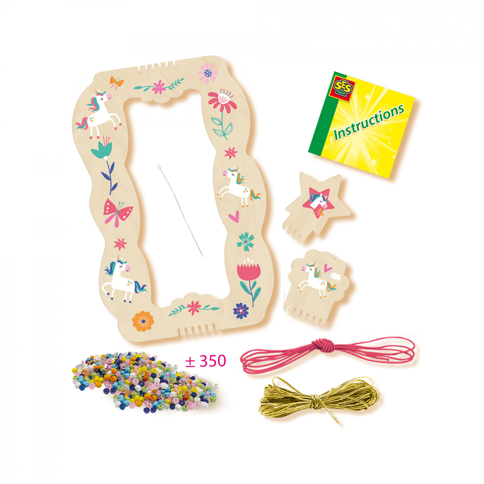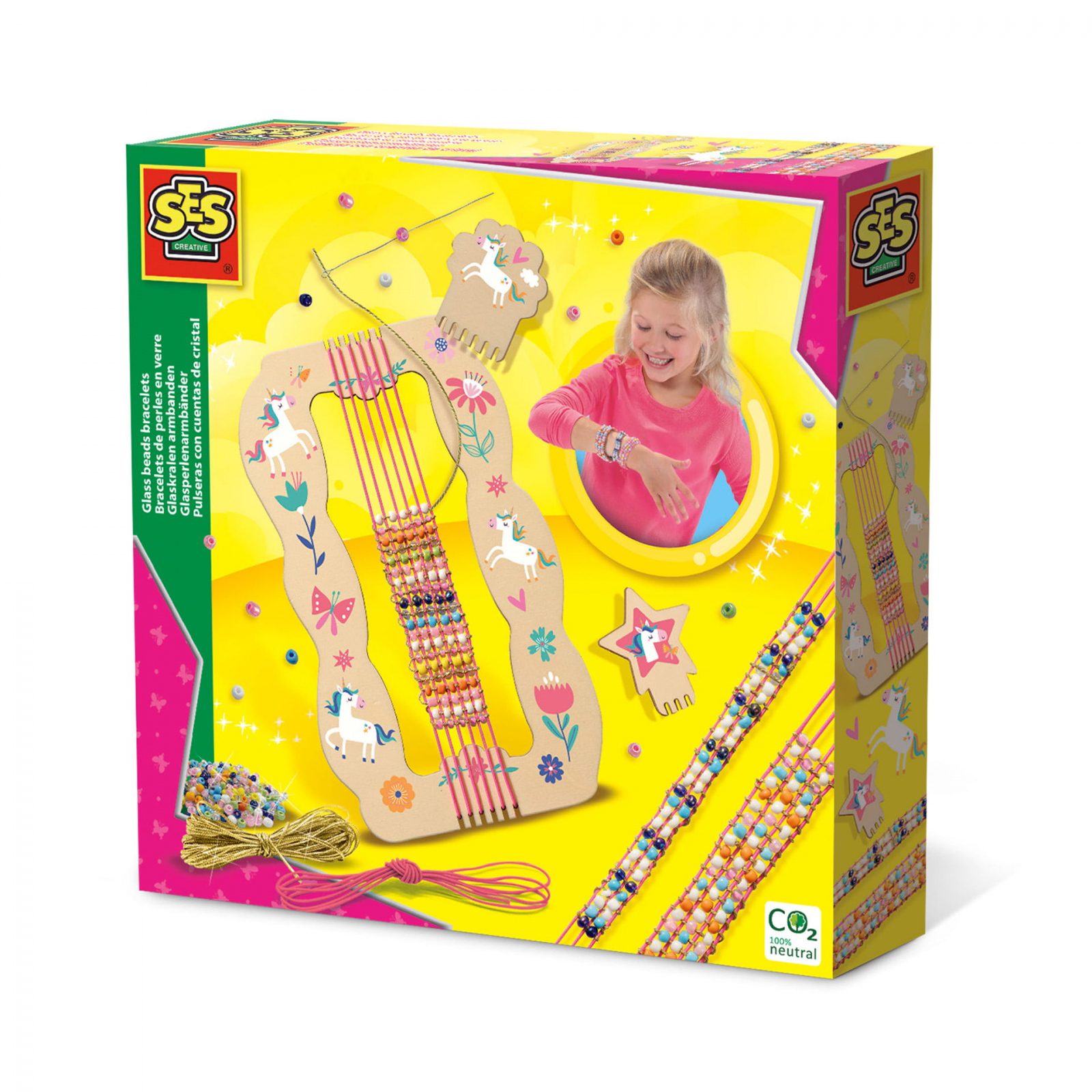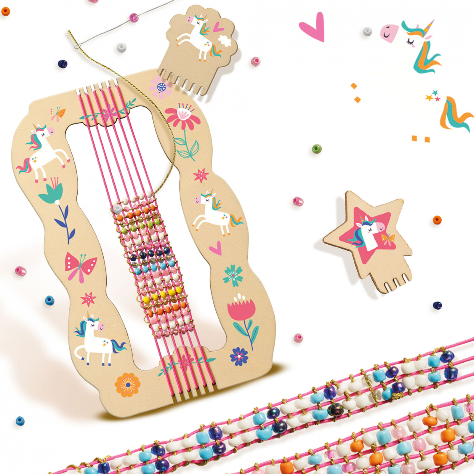 Set creativ pentru copii de facut bratari cu margele-Razboi de tesut. . Cu aceste razboaie de tesut din lemn, poti face cele mai frumoase bratari. Razboaiele de tesut pentru copii din lemn vin cu instructiuni, ata, piepteni de tesut si un ac de tesut, cu care poti sa impleteste amestecul de margele de sticla in bratari inguste sau largi. Activitatea stimuleaza creativitatea copiilor si abilitatile motorii fine, permitandu-le in acelasi timp sa proiecteze cu usurinta si sa creeze bijuterii.