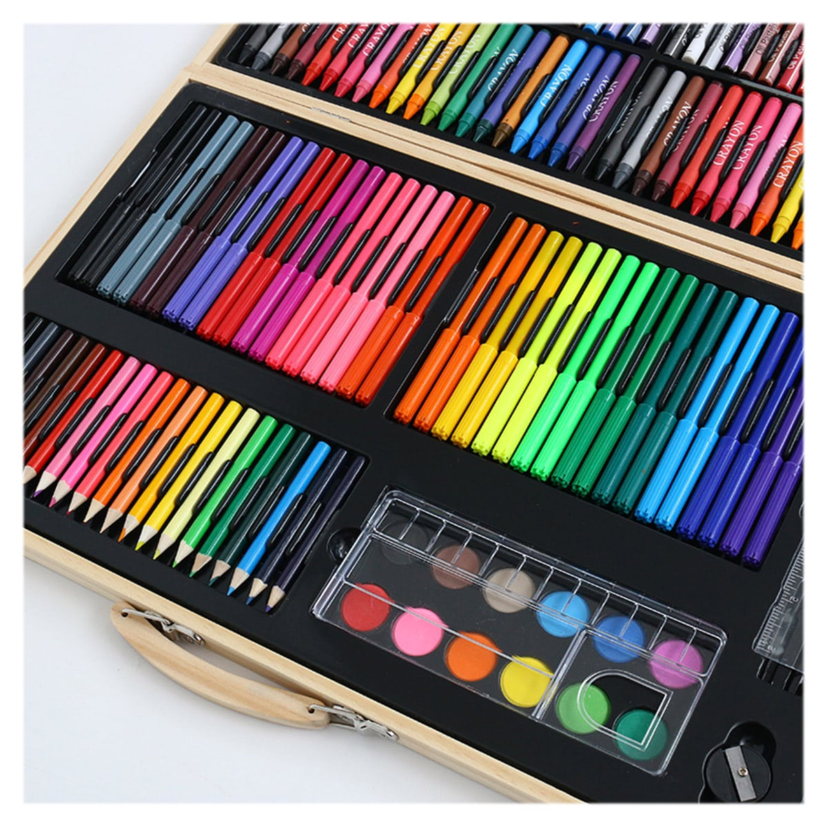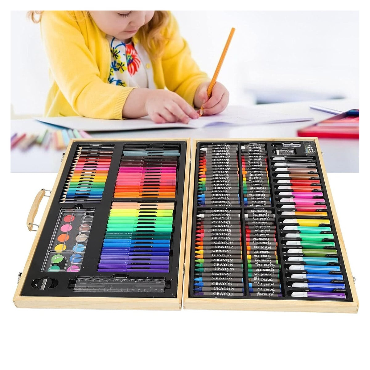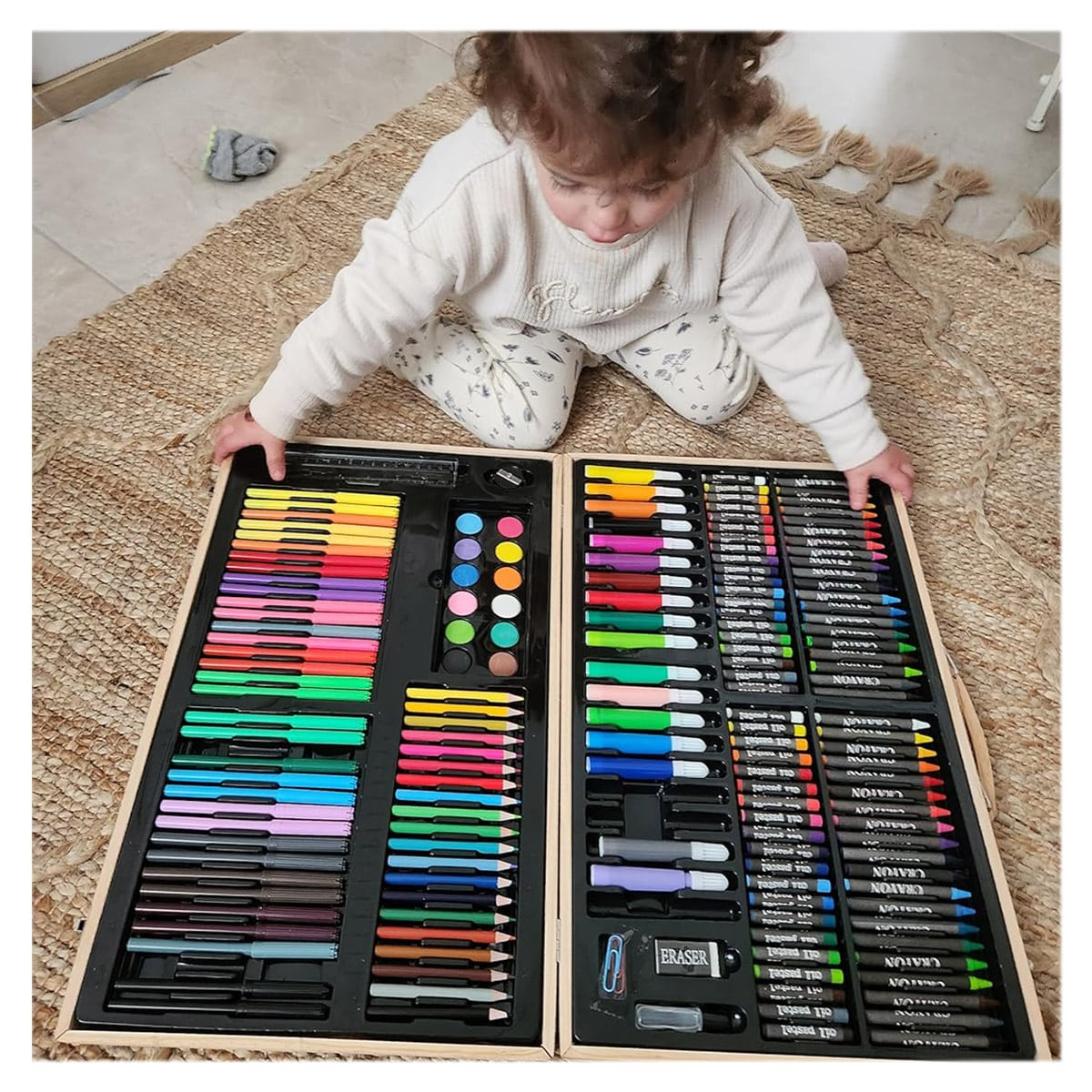• Contine 180 de piese: creioane colorate, creioane cerate, carioci cu varf subtire si gros, pensule, acuarele, paleta de pictura, creion grafit, radiera, ascutitoare etc.