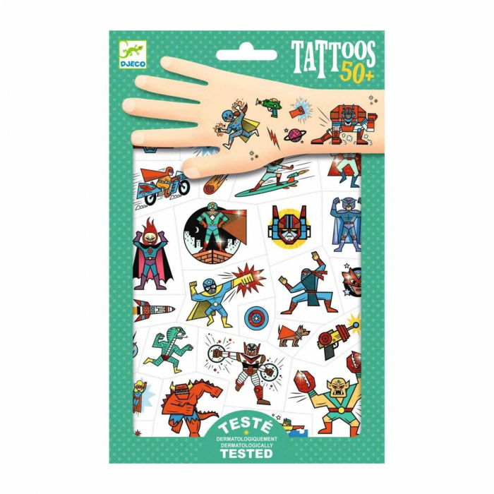 Djeco Tatuaje temporare pentru copii, non alergice, 24 modele, varsta 3 - 6, 6 - 9 ani, Baiat, Fata