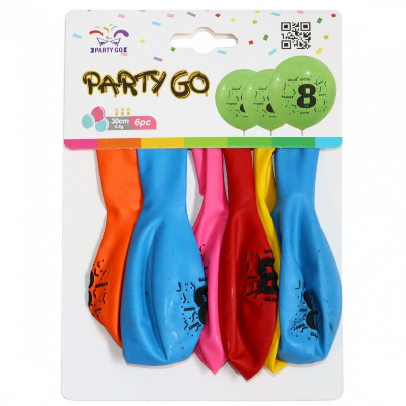 Baloane aniversare PartyGo cifra 8, 30cm, imprimate, diverse culori, FA0205, set 6 buc