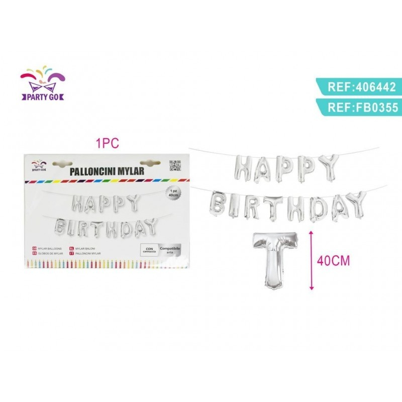 Baloane din folie PartyGo Happy Birthday, 40cm, argintiu, FB0355, set 13 buc