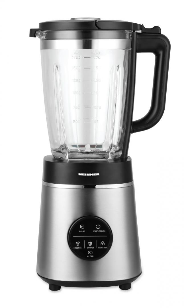 Blender de masa Heinner Bette Noir HBL-D1400SS, panou de comanda tactil, capacitate vas de sticla: 1,75 L, control continuu al vitezei, functii multiple: smoothie, zdrobire gheata, Pulse, Autocuratare, extractie, sistem de blocare dublu, lame din otel inoxidabil, carcasa din inox, nivel de zgomot: 85dB, putere: 1400 W