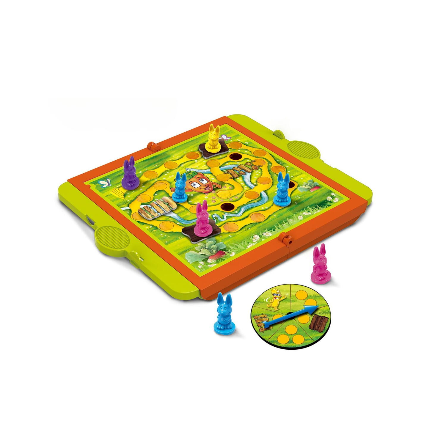 „Cursa Iepurasilor” este jocul perfect pentru a incuraja viteza si strategia intr-o atmosfera plina de rasete si aventura. Fii rapid, dar atent! Cum va evolua cursa? Vezi cine va castiga si cine va da peste cartita nervoasa!_x000D_ Caracteristici:_x000D_ _x000D_ Fii rapid si atent in timp ce topai pe tabla de joc, dar ai grija sa nu te lovesti de cartita nervoasa_x000D_ Un joc amuzant pentru intreaga familie, unde fiecare jucator va trebui sa faca pasi strategici pentru a ajunge primul la linia de sosire, fara a comite greseli_x000D_ Fiecare jucator va da cu rotita pentru a decide cati pasi va face cu iepurasul sau_x000D_ Topaie pe tablita de joc, avansand conform numarului indicat de rotita_x000D_ Fii atent la cartita nervoasa! Daca dai peste ea, va trebui sa te intorci inapoi_x000D_ Castiga primul jucator care ajunge la linia de sosire fara a gresi_x000D_ Ajuta la dezvoltarea unei gandiri rapide si decizii strategice_x000D_ Imbunatateste atentia la detalii si reflexele rapide_x000D_ Joc pentru 2 - 4 jucatori_x000D_ _x000D_ Setul include:_x000D_ _x000D_ tablita de joc pliabila_x000D_ 8 pioni sub forma de iepurasi in 4 culori ( mov, galben, roz, albastru)_x000D_ rotita din carton_x000D_ abtibild_x000D_ instructiuni_x000D_ _x000D_ Dimensiuni ambalaj: 21 x 14.5 x 4 cm _x000D_ Dimensiune aprox. tablita desfacuta: 19 x 17 cm _x000D_ Varsta recomandata: 4 ani+_x000D_ Atentie! Contraindicat copiilor mai mici de 3 ani. Jucaria/produsul poate contine piese mici care se pot inghiti sau inhala existand pericolul de sufocare sau nu este potrivita copiilor mai mici de 3 ani. Nu lasati ambalajele jucariilor/produselor la indemana copiilor. Pastrati instructiunile si etichetele pentru referinte viitoare.