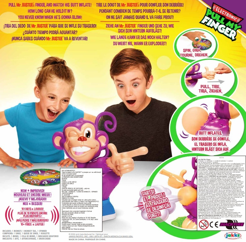 Trage de deget… si pregateste-te sa razi! _x000D_ Pull My Finger este jocul care aduce distractia la un alt nivel! Trage de degetul maimutei si urmareste cum i se umfla fundul... dar ai grija! La un moment dat, va scoate un sunet de „part†care va face pe toata lumea sa izbucneasca in ras!_x000D_ Transforma orice intalnire sau seara de jocuri intr-un moment memorabil.
