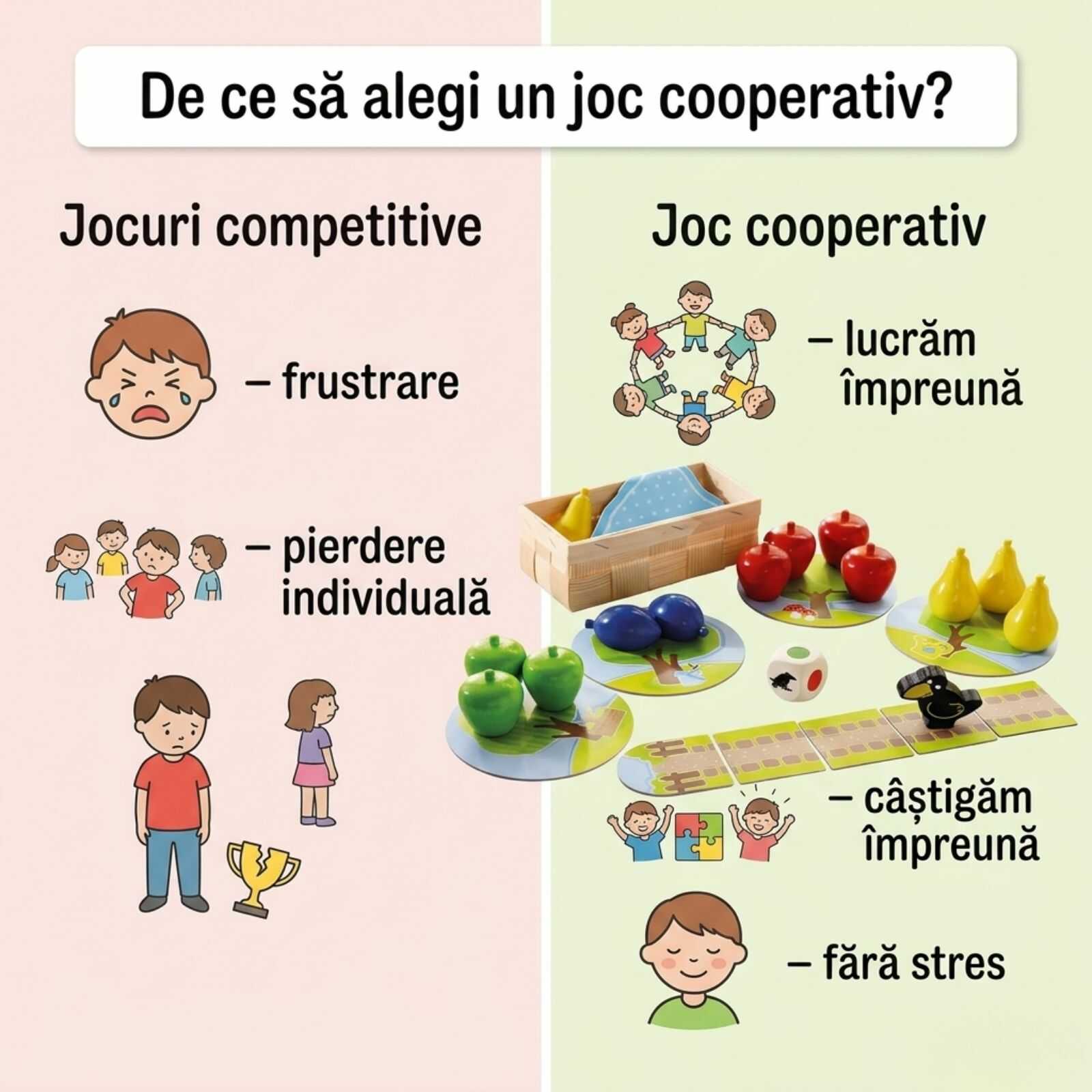 Jocurile cooperative joaca un rol esential in dezvoltarea emotionala a copiilor, mai ales la varste mici. In loc sa concureze, copiii invata sa colaboreze, sa comunice si sa ia decizii impreuna.