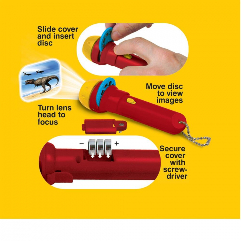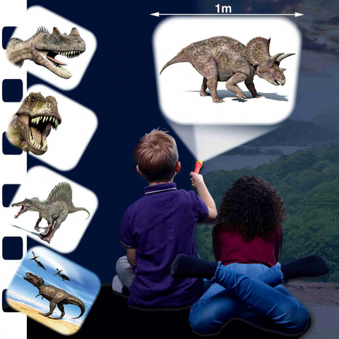 - foloseste acest proiector pentru a analiza in detaliu imagini uimitoare cu dinozauri pe care le poti proiecta cu usurinta pe peretii/tavanul camerei tale