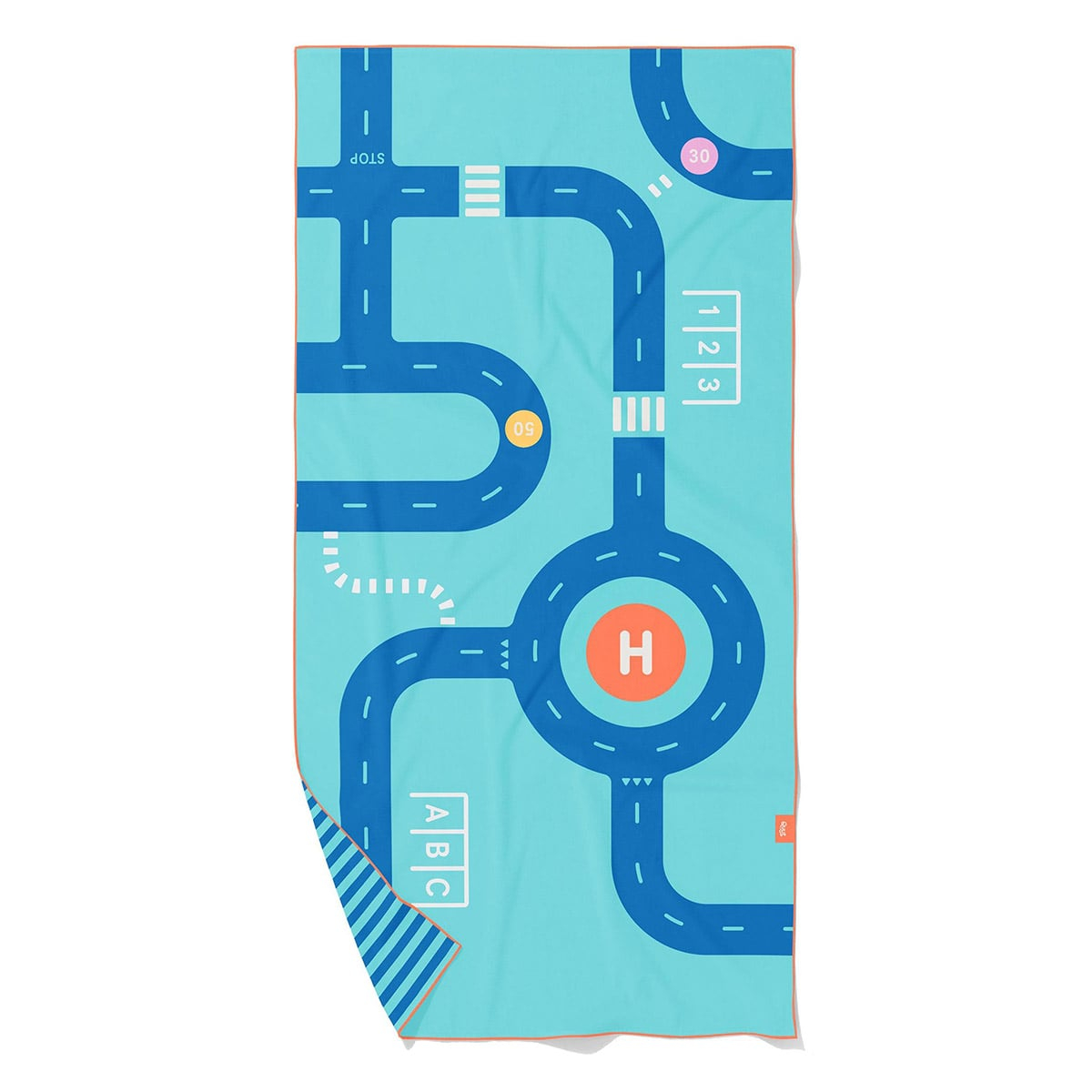 Prosopul de joaca are un design unic cu doua fete: pe o parte exista un traseu auto cu drumuri, intersectii, un sens giratoriu si parcari, iar pe cealalta un model grafic cu dungi bleu-albastre.