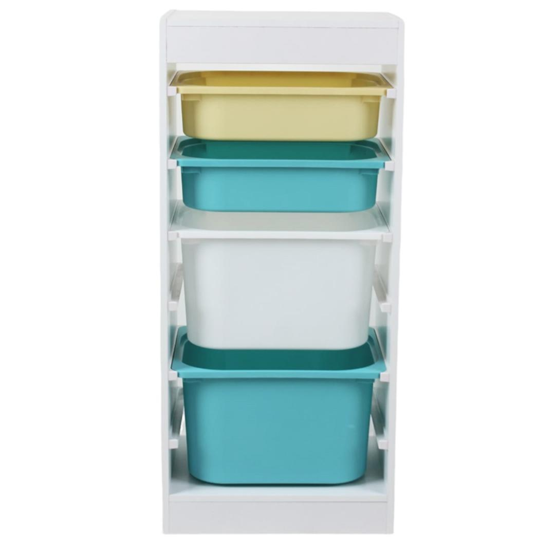 Pentru copii este benefic sã invete de mic ordinea si organizarea lucrusoarelor proprii fãrã ajutorul pãrintilor. Dandu-i aceasta responsabilitate va simti ca aveti incredere in el si va fi foarte mandru cã poate sã facã ordine „singur”.In aceasta etapa , este de mare ajutor organizatorul de jucãrii . Designul este foarte placut atat pentru fete cat si pentru baieti . Are 4 sertare de dimensiuni si culori diferite, ceea ce dezvoltã si mai mult abilitatea de organizare. El poate decide ce tipuri de jucãrii depoziteaza in cutia galbena,albastra si alba , invatand sa compare si diferitele dimensiuni. Organizatorul este robust si rezistent. Se asambleaza rapid si usor de adulti. Material : PB+ PP Dimensiune produs: 40.8X30X90.3 (cm) Greutate: 8.8 kg
