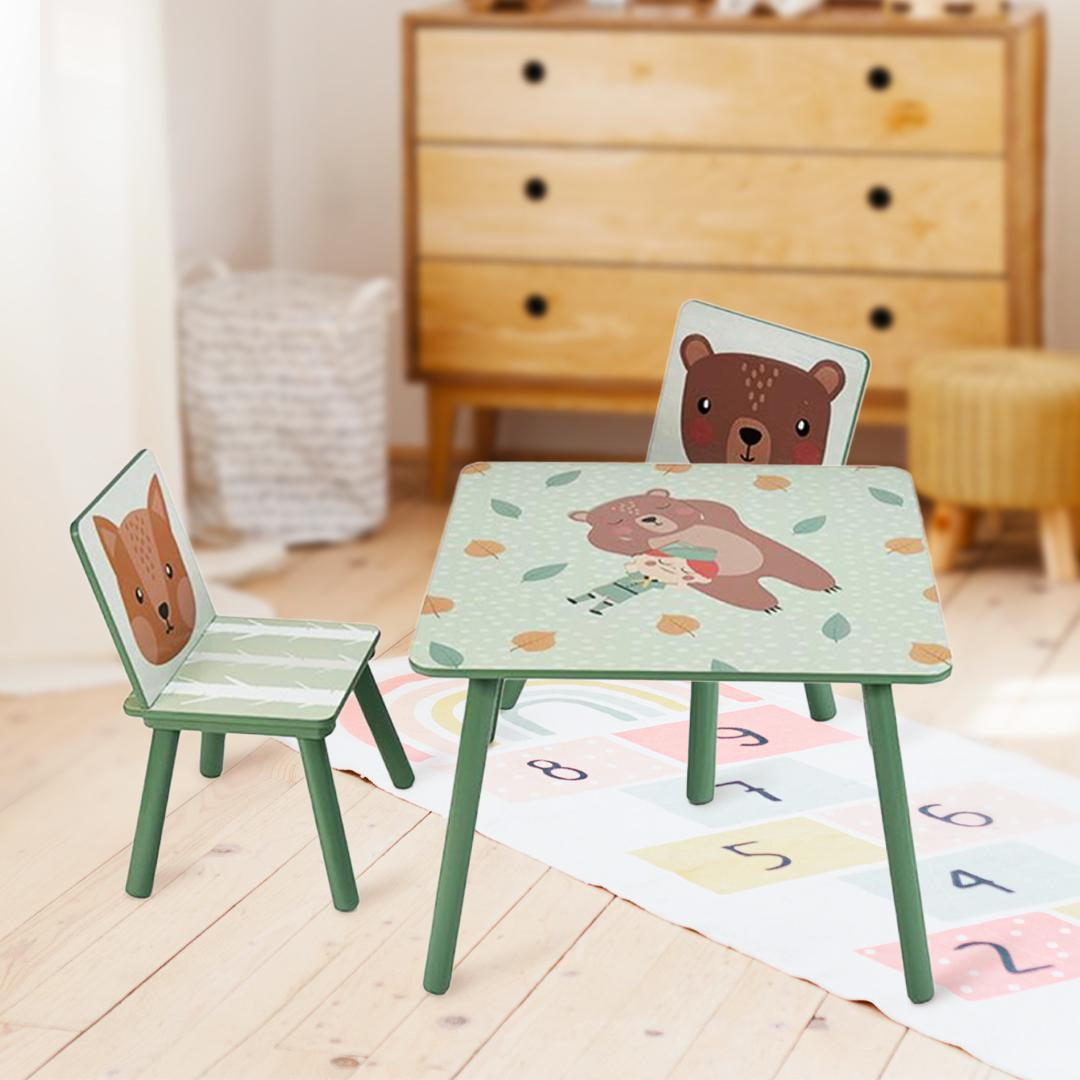 Set 2 scaune + măsuță GreenForest U-Grow este alegerea ideală pentru copiii mici, oferind un spațiu confortabil și practic pentru joacă, învățare sau desenat. Cu un design modern și culori plăcute, acest set se integrează perfect în camera copilului, grădiniță sau orice spațiu dedicat activităților creative. Caracteristici principale: Design ergonomic și atractiv: Se potrivește perfect nevoilor celor mici, oferind confort și siguranță. Culoare predominanta verde: O nuanță plăcută și veselă, care adaugă un plus de prospețime și energie spațiului. Set complet: Include o măsuță și două scaune, ideale pentru activități educative, desen sau joacă. Materiale durabile: Fabricat din materiale rezistente, asigurând stabilitate și siguranță în utilizare. Dimensiuni potrivite pentru copii: Perfect adaptat pentru micuți, oferind un spațiu confortabil pentru activitățile zilnice. Acest set este ideal pentru a încuraja creativitatea și independența copiilor, oferindu-le un spațiu propriu unde să învețe și să se joace în siguranță. Setul este usor de asamblat, produsul fiind insotit de intrustructiuni de montaj pas cu pas. Dimensiune scaun: 26.8x26.8x51 cm Dimensiune birou: 60x60x44 cm