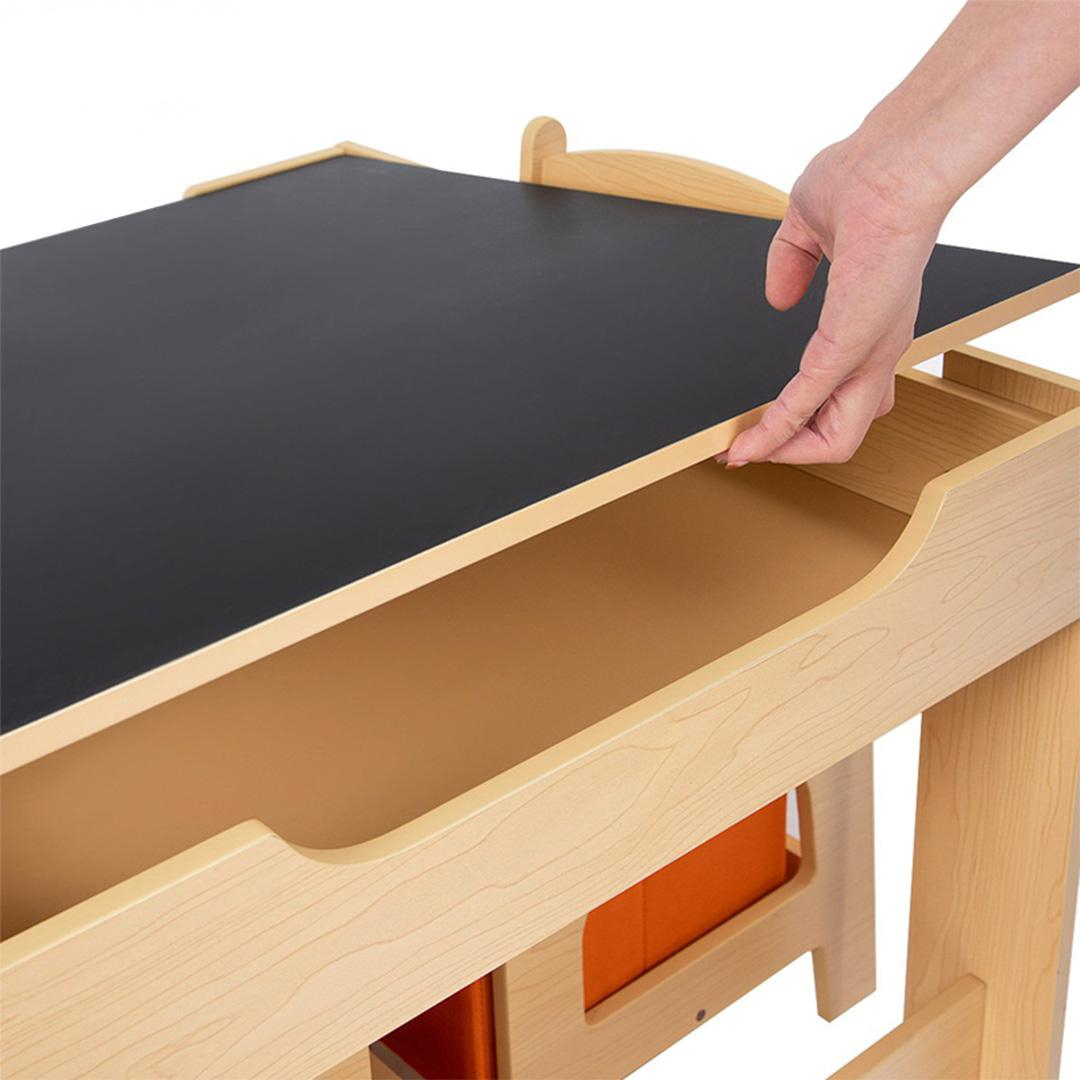 Setul de masă și scaun pentru copii este conceput ținând cont de înălțimea, dimensiunea corpului și nevoile de învățare ale copiilor. Le protejează eficient coloana vertebrală. Blatul versatil are o tablă albă pentru citit, mâncat sau alte activități și o tablă pentru desen sau ciorne. Scoateți blatul mesei și acesta devine un spațiu pentru blocuri de construcție sau meșteșuguri, eliminând dezordinea. Spatiu amplu de depozitare: Pe langa spatiul de depozitare de sub masa, am inclus cutii de depozitare in partea de jos a scaunelor. Aceste cutii de carton nețesute, învelite în material textil, adaugă caracter practic, fără a adăuga greutate excesivă. Acestea au deschideri mari pentru acces și organizare ușoară.