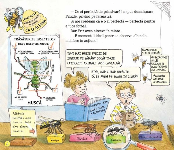 Ca sa aflam toate aceste raspunsuri, cel mai usor ar fi sa ne transformam in albine! Iar in aceasta noua aventura a Autobuzului magic, copiii din clasa domnisoarei invatatoare Frizzle chiar asta fac, devin albine. Zburand prin gradini, bazaind incoace si-ncolo, adunand polen si jucandu-se cu ceara moale, copiii invata ca a fi albina inseamna sa muncesti impreuna cu ceilalti pentru binele tuturor. Poate de aceea mierea este atat de dulce si parfumata.