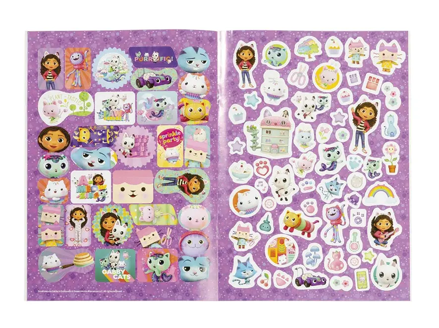 Cartea cu abtibilduri reutilizabile „Gabby’s Dollhouse” este ideala pentru copiii care doresc sa se distreze intr-un mod creativ si interactiv, explorand universul Gabby’s Dollhouse in timp ce isi dezvolta abilitatile artistice si imaginative._x000D_ Caracteristici:_x000D_ _x000D_ Aceasta carticica ofera doua activitati distractive intr-un singur pachet: de colorat si personalizarea desenelor cu abtibilduri reutilizabile_x000D_ Copiii pot colora cele 12 pagini tematice care ilustreaza aventurile lui Gabby si prietenii ei din Gabby’s Dollhouse, iar apoi pot personaliza aceste desene folosind cele 90 de abtibilduri reutilizabile incluse_x000D_ Abtibildurile sunt usor de utilizat si de dezlipit fara a deteriora paginile_x000D_ Pe spatele cartii, copiii pot decupa doua figurine adorabile cu DJ Catnip si Pillow Cat_x000D_ Acestea pot fi folosite ulterior ca personaje pentru jocuri de rol sau ca decoratiuni, adaugand o noua dimensiune de distractie creativa_x000D_ Copiii au posibilitatea de a colora si de a crea propriile lor povesti vizuale prin combinarea abtibildurilor reutilizabile cu paginile de colorat_x000D_ Fanii Gabby’s Dollhouse vor fi incantati sa petreaca timp alaturi de personajele preferate din serial, explorand lumea magica a acestora si interactionand cu ele in mod creativ_x000D_ _x000D_ Setul include:_x000D_ _x000D_ 12 pagini de colorat_x000D_ 90 de abtibilduri repozitionabile_x000D_ Figurine decupabile cu DJ Catnip si Pillow Cat5_x000D_ _x000D_ Dimensiune ambalaj: 21 x 29.5 x 0.3 cm_x000D_ Varsta recomandata: 3 ani+_x000D_ Atentie! Contraindicat copiilor mai mici de 3 ani. Jucaria/produsul poate contine piese mici care se pot inghiti sau inhala existand pericolul de sufocare sau nu este potrivita copiilor mai mici de 3 ani. Nu lasati ambalajele jucariilor/produselor la indemana copiilor. Indepartati orice ambalaj al jucariei/produsului inainte de a da jucaria/produsul copilului. Va rugam sa supravegheati copilul in timp ce se joaca/foloseste acest produs. Pastrati instructiunile si etichetele pentru referinte viitoare. Pastrati jucaria/produsul departe de foc, feriti jucaria/produsul de temperaturi ridicate si umiditate.
