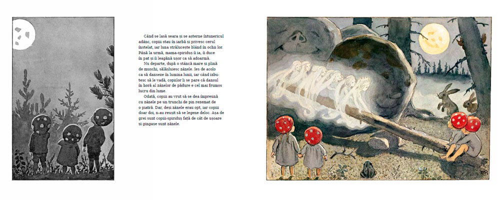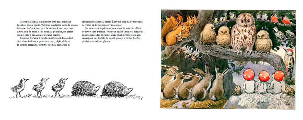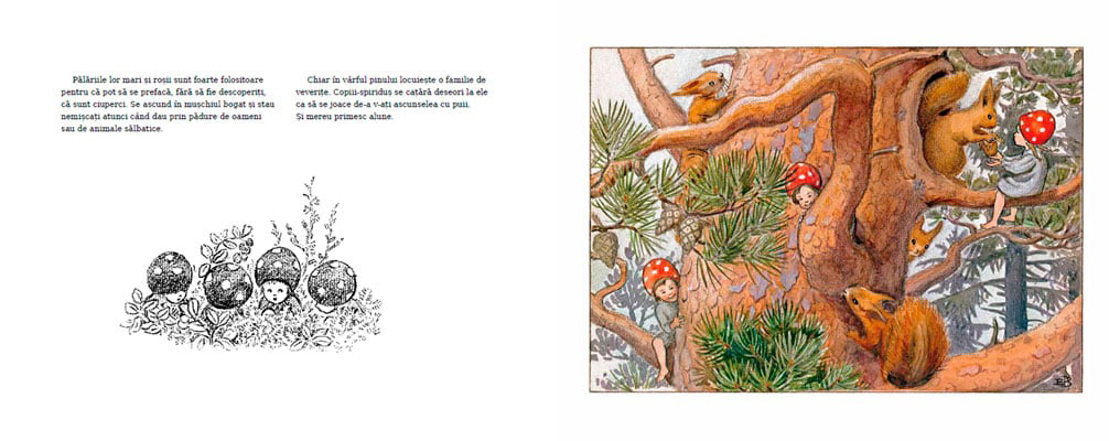 Varsta Recomandata: 2-8 ani Chiar daca nu i-a vazut nimeni pana acum, in paduri traiesc, fara indoiala, alaturi de zane, si numeroase familii de spiridusi. Asa se spune in povesti. Iar spiridusii, fireste, au si ei copii. Ce fac ei toata ziua? Alearga, se ascund, sar, striga, se joaca in apa sau cu pietre si bete — dar se duc si la scoala din padure, alaturi de toti puii de animale, isi ajuta parintii la stransul proviziilor pentru la iarna, se ajuta intre ei sau pe alte vietuitoare. Dupa care alearga, se ascund, sar, striga...