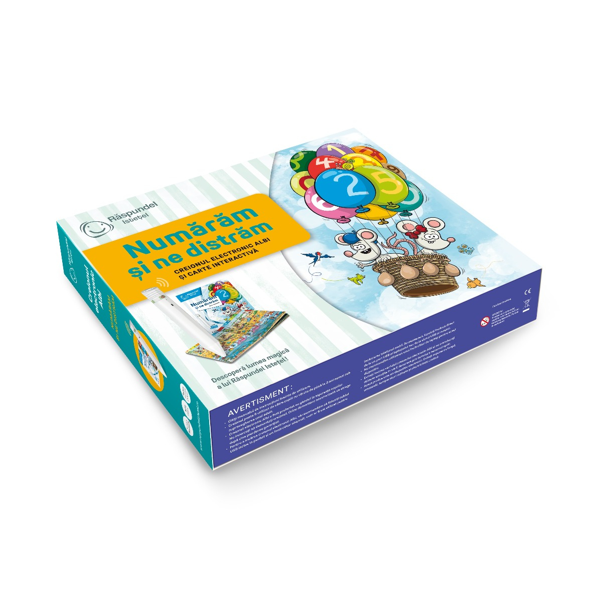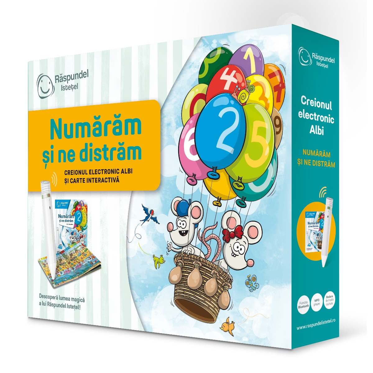 Pachetul contine creionul vorbitor ALBI 2.0 si cartea Numaram si ne distram. Cartea interactiva pentru copii Numaram si ne distram le prezinta copiilor incepand cu varsta de 3 ani numerele si ii invata sa numere pana la douazeci printr-o serie de texte, sunete si exercitii distractive. Cartea ii duce pe copii in curtea din spate, la magazinul de jucarii, la rau sau chiar in varful copacilor. Dar de ce acolo? Vei fi surprins, dar peste tot sunt o multime de lucruri de numarat. Ghizii Matilda si soarecele Ludovic, ii vor convinge pe copii de faptul ca cifrele pot fi distractive. Cu ajutorul acestei carti copiii isi pot testa si puterea de observatie, atentia si memoria. Vor gasi numere distractive la carnaval, la mare sau la munte? Hai sa vedem. Continut : Peste 2.100 de sunete si texte. Un creion functioneaza cu toate produsele Raspundel Istetel. Varsta recomandata: 3+ ani