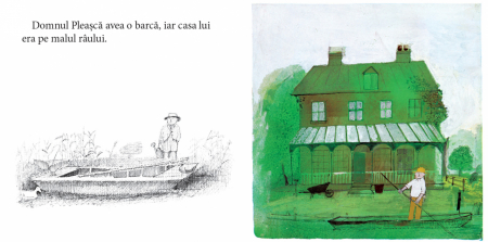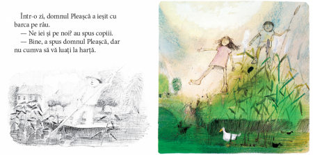 Domnul Pleasca pleaca la plimbare cu barca si toata lumea vrea sa vina cu el. Nu e prea mult loc, dar daca pasagerii sunt intelegatori, va fi o plimbare frumoasa si linistita pe rau. Dar... daca nu? O vreme, au plutit fericiti impreuna, dar apoi… capra a dat cu copita, vitelul a tropait, gainile au dat din aripi, oaia a behait, purcelul s-a tavalit, catelul a necajit pisica, pisica l-a fugarit pe iepuras, iepurasul a topait, copiii s-au luat la harta, barca s-a inclinat…