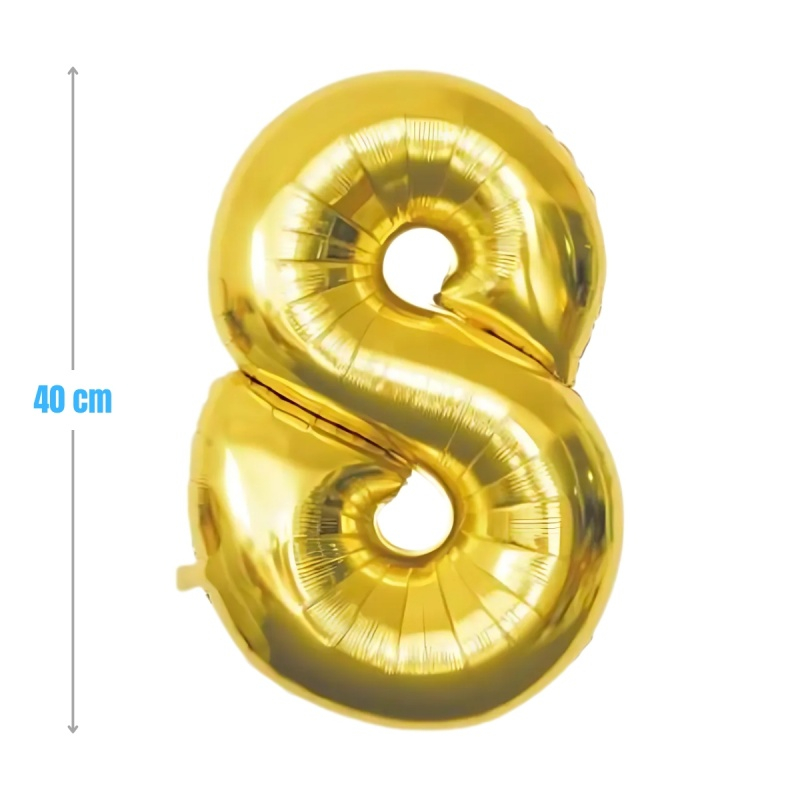 Baloane aniversare PartyGo cifra 8, 40cm, auriu, 405182 / FB0019
