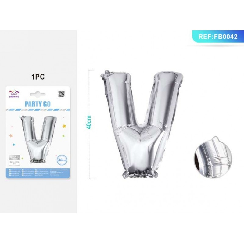 Balon din folie PartyGo litera V, 40cm, argintiu, 405213 / FB0042