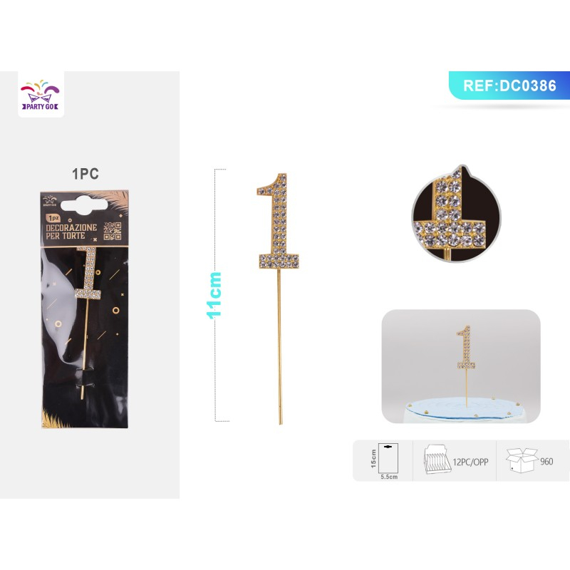 Decoratiuni aniversare PartyGo cifra 1, 11cm, DC0386