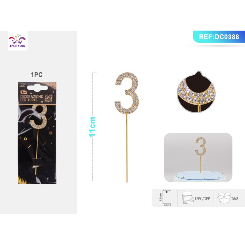Decoratiuni aniversare PartyGo cifra 3, 11cm, DC0388