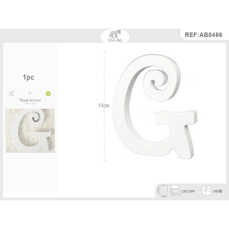 Accesorii petrecere Zebra litera G, 11cm, lemn, autoadeziva, JAB0466