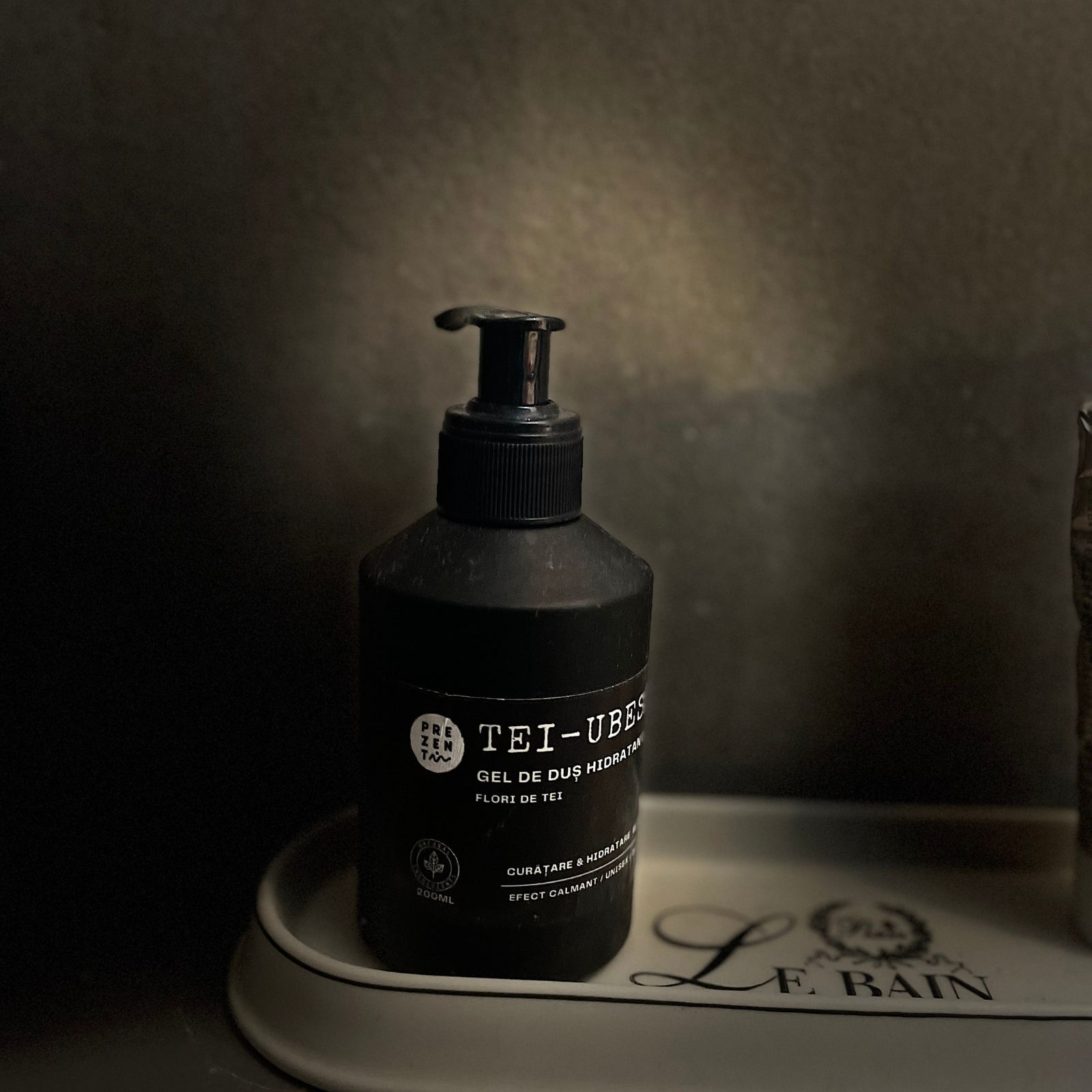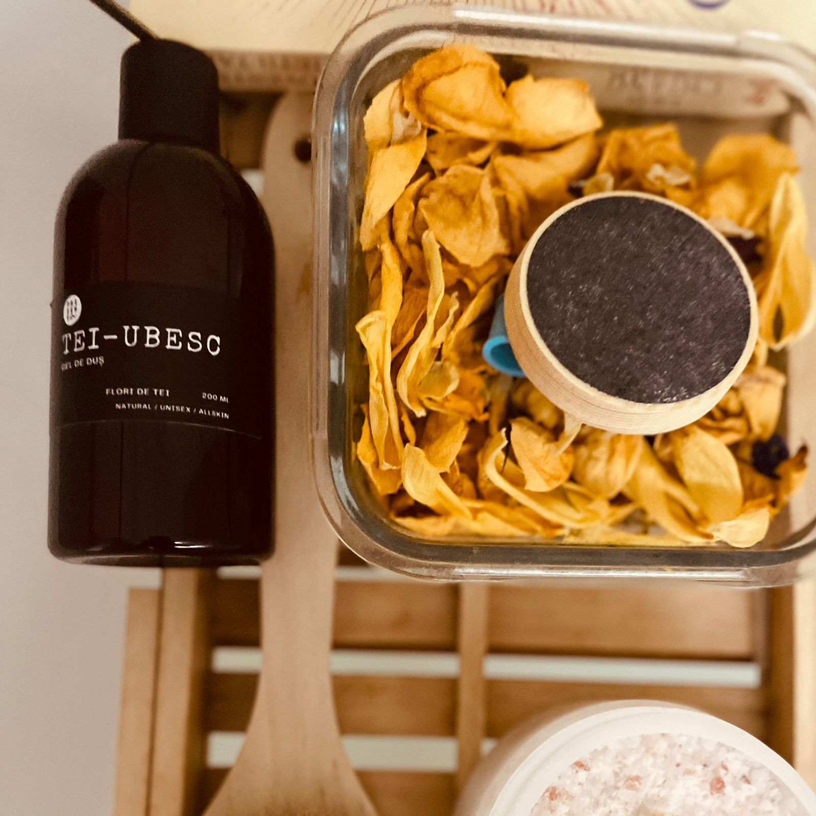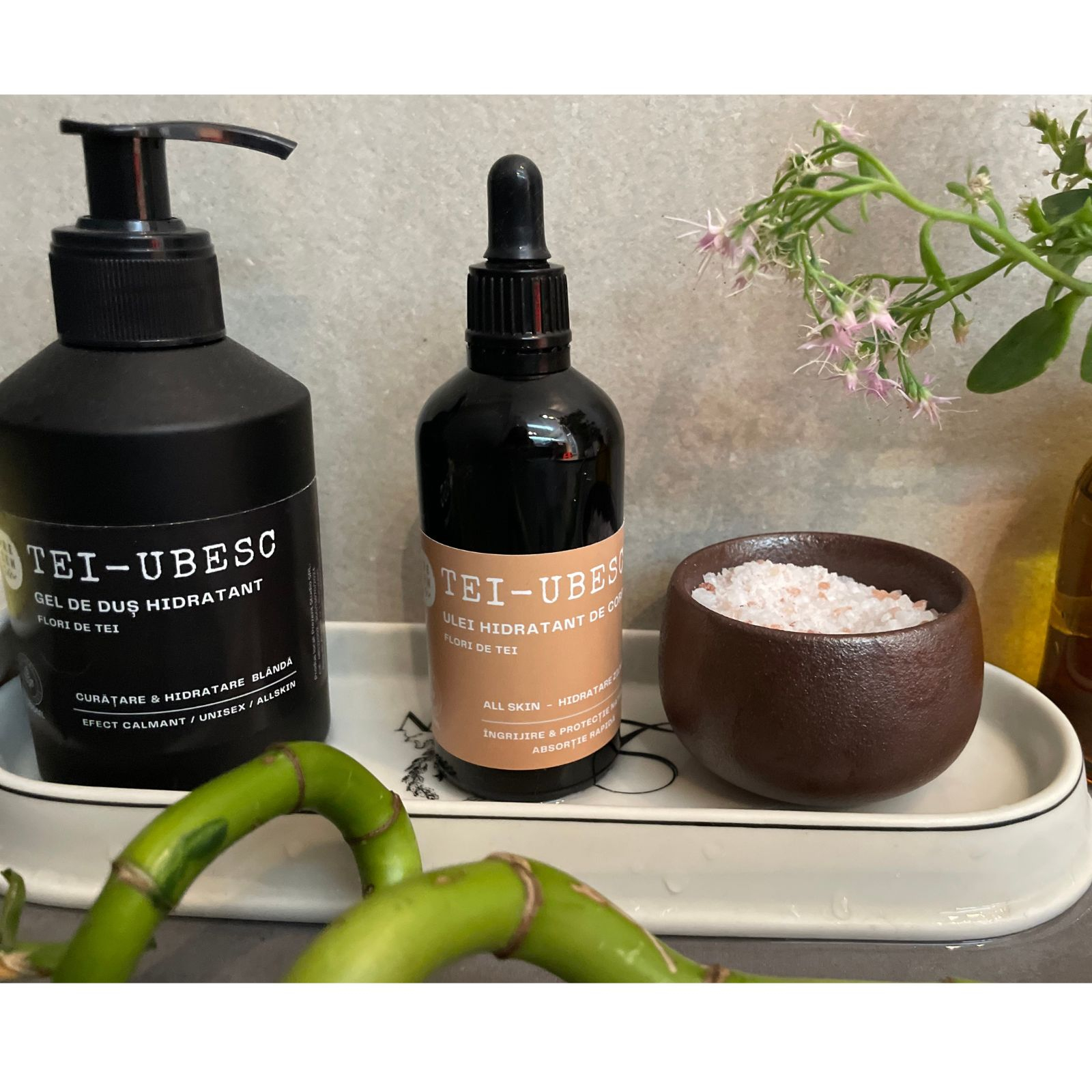 Produs premium prin calitatea ingredientelor naturale folosite, este prietenos cu toate tipurile de piele. Ingrediente: Ulei de cocos saponificat, Ulei de masline saponificat, Ulei de ricin saponificat, Apa distilata, Glicerina, Conservant PE - Ethylhexylglycerin (activ natural), Parfum de tei. Alături de săpunul natural, gelul de dus cu tei completează rutina de curățare și hidratare profundă a pielii tale, lansând-o catifelată și cu un miros discret și autententic de flori de tei.