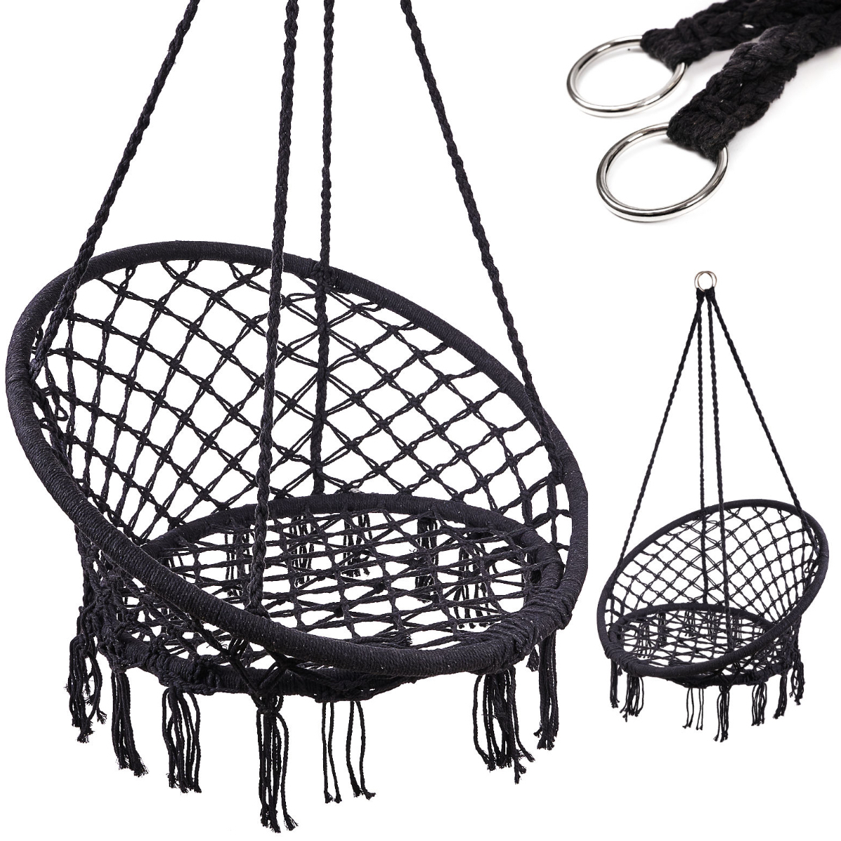 Leagan Suspendat Cuib de Barza, Scaun Hamac Interior/Exterior, Bumbac si Metal, Maxim 150kg, 80cm, Negru