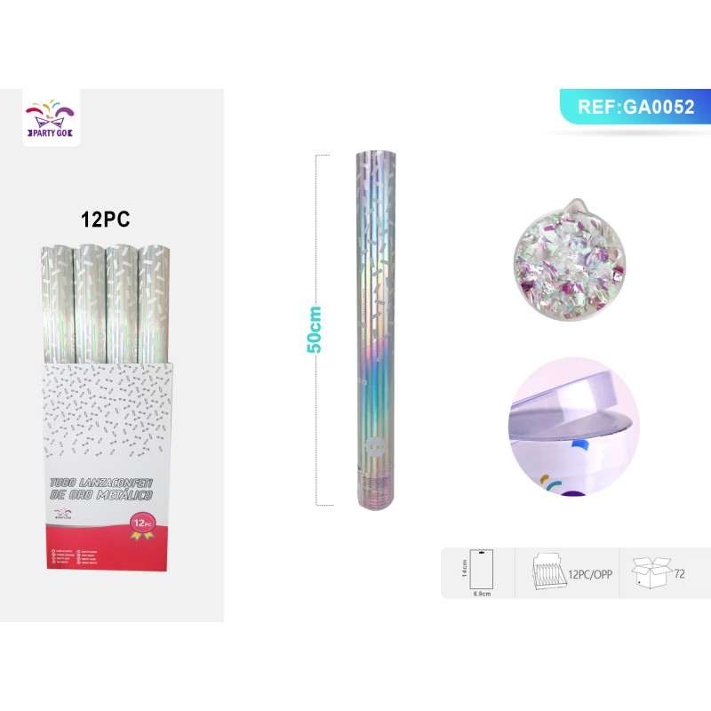 Tun confetti PartyGo, 50cm, argintiu, GA0052