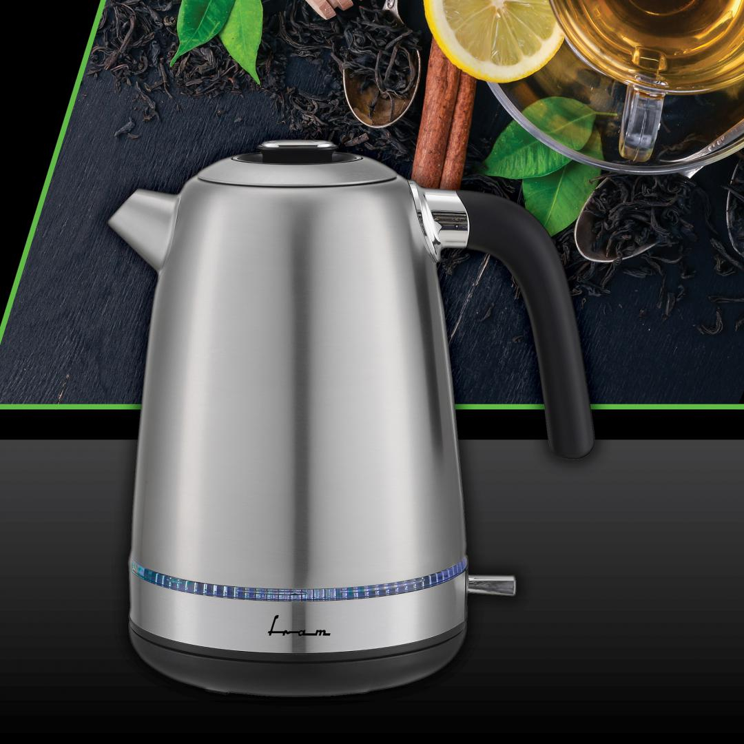 FIERBATOR ELECTRIC FRAM FEK-M2200SS, 1850-2200W, 1.7L, INEL LUMINOS LED, OPRIRE AUTOMATA, PROTECTIE IMPOTRIVA FUNCTIONARII FARA APA, CAPAC DETASABIL PENTRU CURATARE USOARA, CARCASA INOX