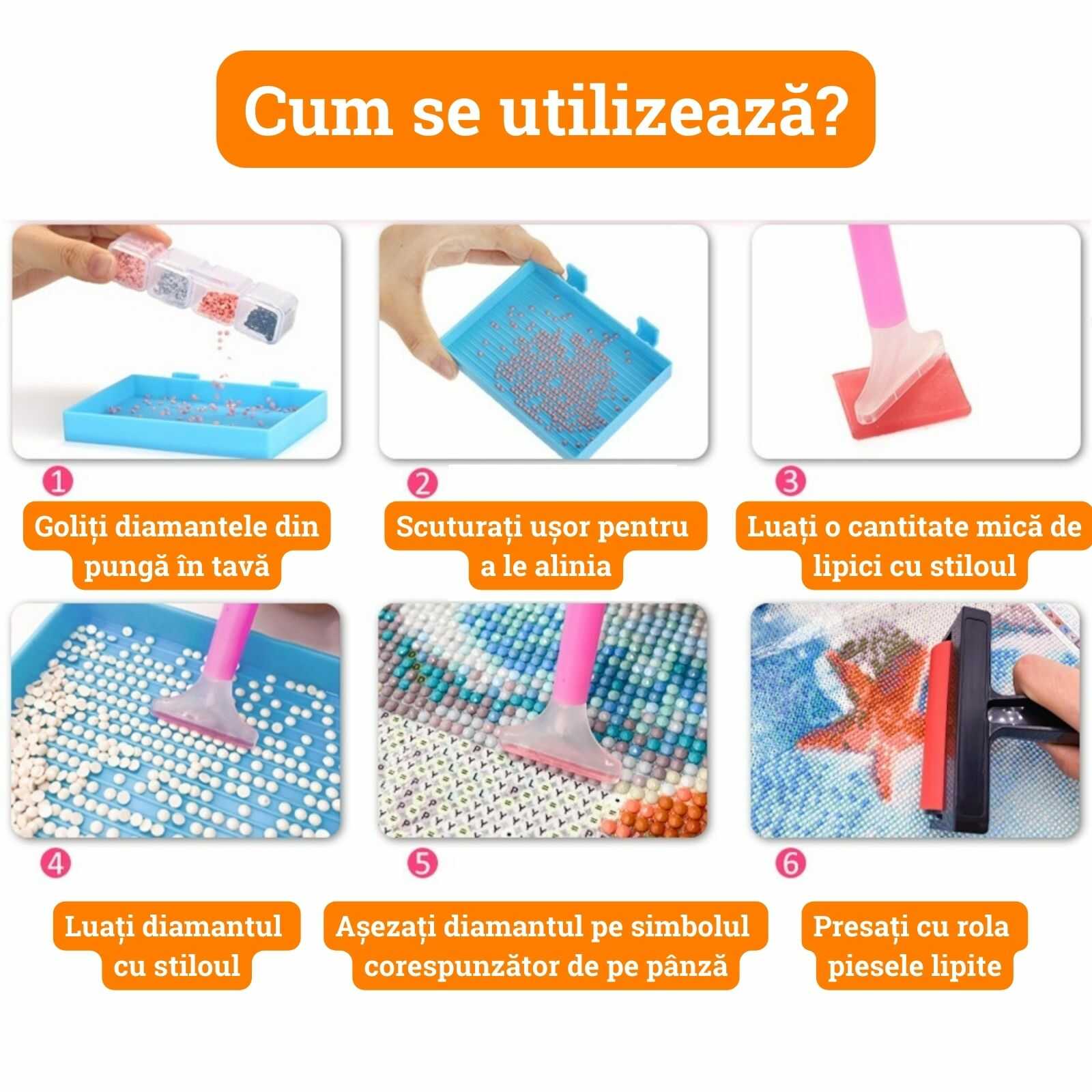 Tava de sortare se foloseste pentru a aranja diamantele in randuri ordonate, facilitand procesul de aplicare a diamantelor pe panza. Pur si simplu rasturnati diamantele in tava si scuturati usor pentru a le alinia.