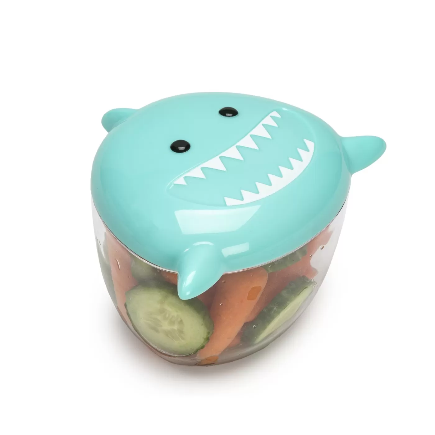 Acest recipient de mancare cu capac rechin, de dimensiuni potrivite pentru copii, face gustarile distractive si are, in acelasi timp, un capac ermetic si antipicurare pentru a preveni mizeriile.