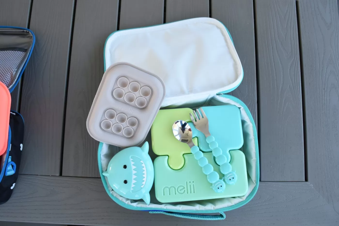 Recipient hrana bebe, Melii, model rechin este fabricat dintr-un corp durabil si transparent pentru a evalua usor cat de plin este recipientul, iar design-ul faciliteaza deschiderea si inchiderea.