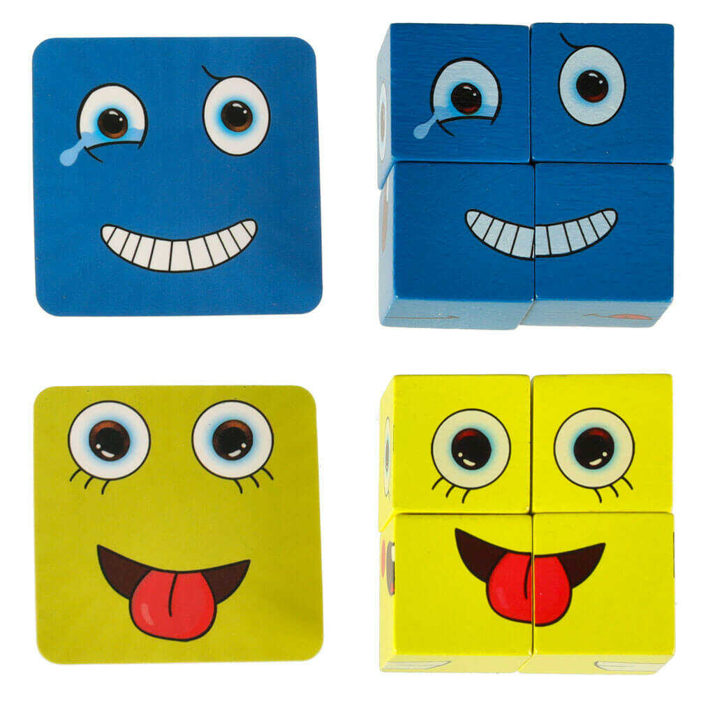 Joc expresii faciale copii, joc terapeutic emotiile si expresiile fetei, cuburi din lemn, 3 ani+