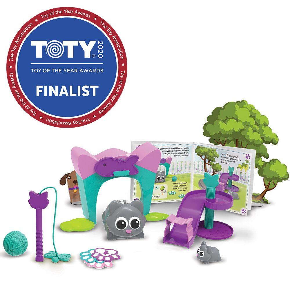 - urmeaza instructiunile si descopera daca poti sa o programezi pe Scamper sa se joace de-a v-ati ascunselea, sa prinda fluturasul de la jucaria speciala pentru pisicute sau sa o prinda pe micuta Sneaker cand se da pe tobogan