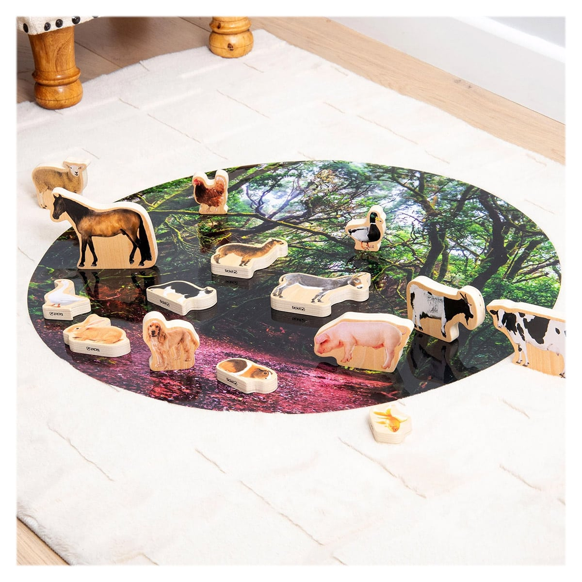 TickIT Blocuri din lemn cu animale domestice, 15 piese, copii varsta 1-7 ani
