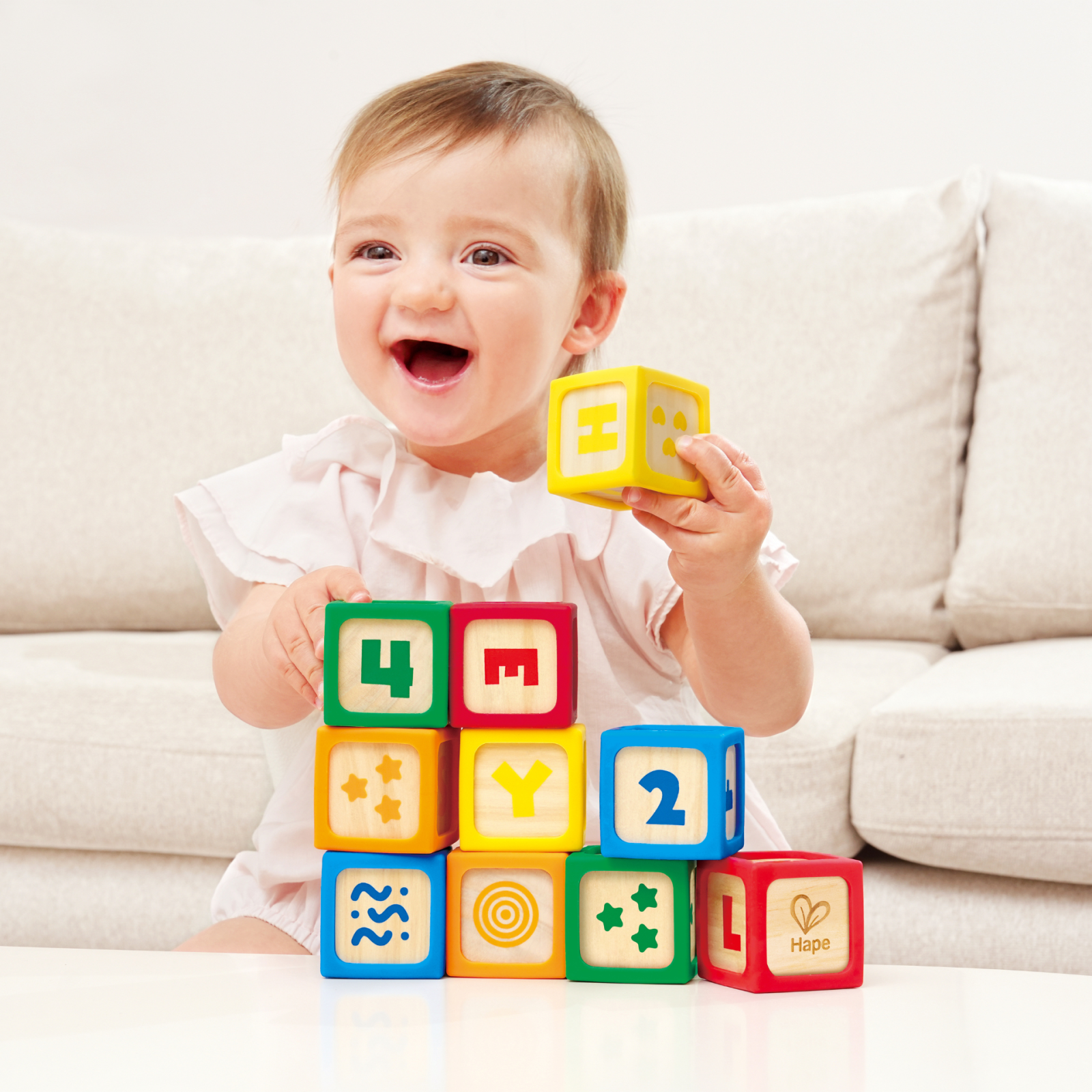 Aceste blocuri promoveaza invatarea cu mai multe fatete cu numere, litere si modele, favorizand cresterea cognitiva timpurie._x000D_ Fabricate din lemn de calitate premium si taiate cu silicon care atenueaza zgomotul, aceste blocuri garanteaza un mediu de joaca sigur si linistit._x000D_ Cele 10 blocuri prezinta o gama vibranta de culori, promovand recunoasterea si explorarea jucausa a culorilor._x000D_ Manipularea si stivuirea acestor blocuri ii ajuta pe copii sa-si perfectioneze abilitatile motorii si sa imbunatateasca coordonarea mana-ochi._x000D_ Conceput pentru prinderea delicata a celor mici, aceste blocuri sunt usor de prins, facandu-le perfecte pentru bebelusi._x000D_ Timpul de joaca este mai mult decat distractie; este o oportunitate de invatare. Desi aceste blocuri sunt un inceput excelent, interactiunea dvs. le face si mai bune. Incurajati-va copilul sa stivueasca dupa marime, litera sau numar pentru a-si imbunatati coordonarea ochi-mana._x000D_ _x000D_ Dimensiuni cutie: L: 21, l: 5.5, H: 18 cm.