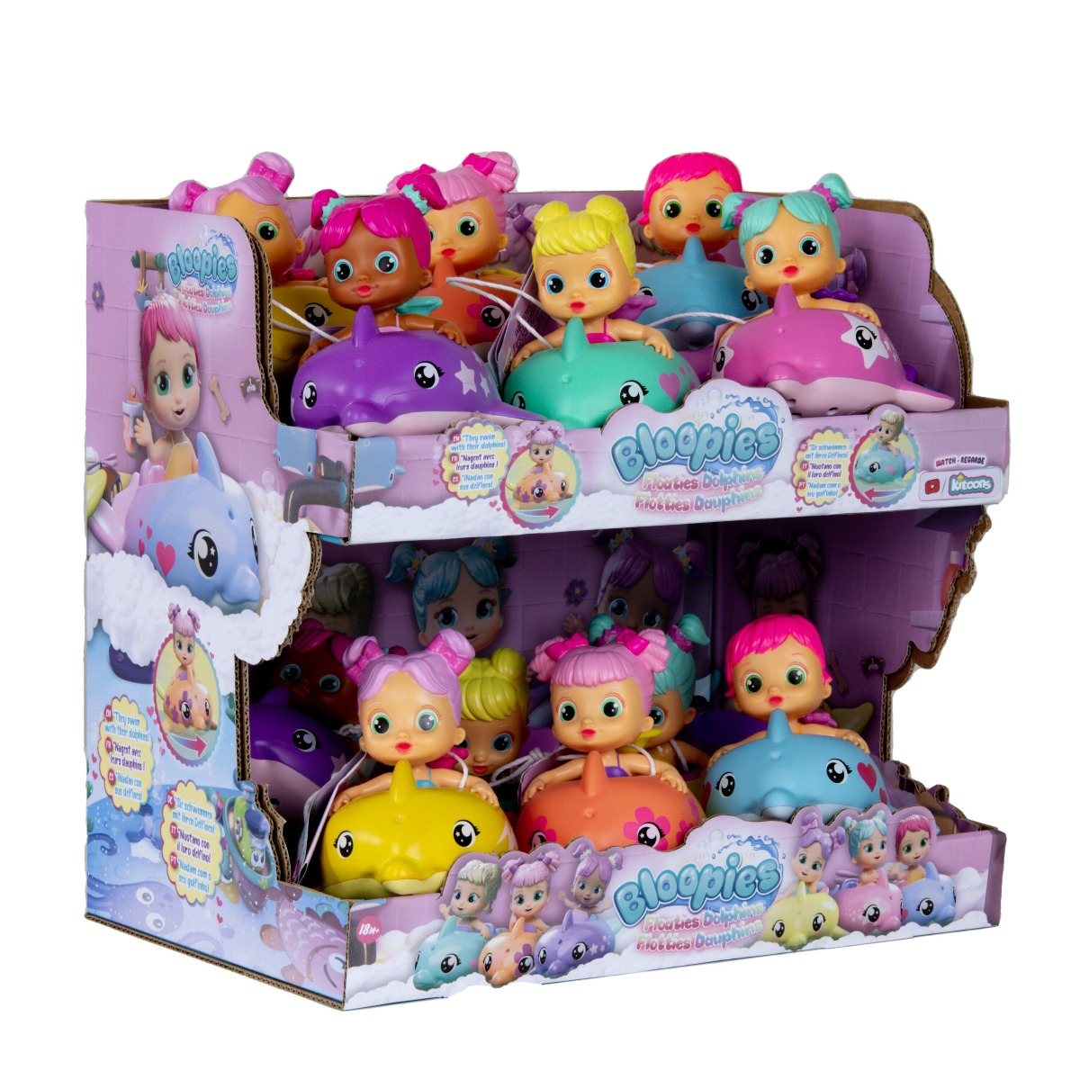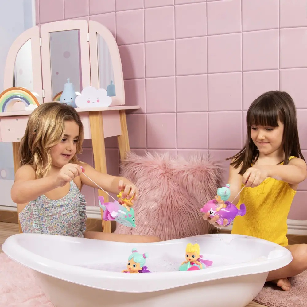 Aceste jucarii de baie adorabile, sunt concepute pentru a transforma baia intr-o experienta distractiva si magica pentru cei mici. Sunt disponibile in 6 modele diferite, fiecare delfin are un maner in forma de scoica - trageti de acesta si, odata ce puneti delfinul in apa, acesta se va misca ca si cum ar inota. In plus, papusile pot stropi apa prin gura si pot face baloane atunci cand sunt folosite cu spumant de baie, adaugand o doza suplimentara de distractie. Aceste jucarii stimuleaza imaginatia celor mici si sunt perfecte pentru a transforma rutina zilnica intr-o activitate placuta si captivanta.