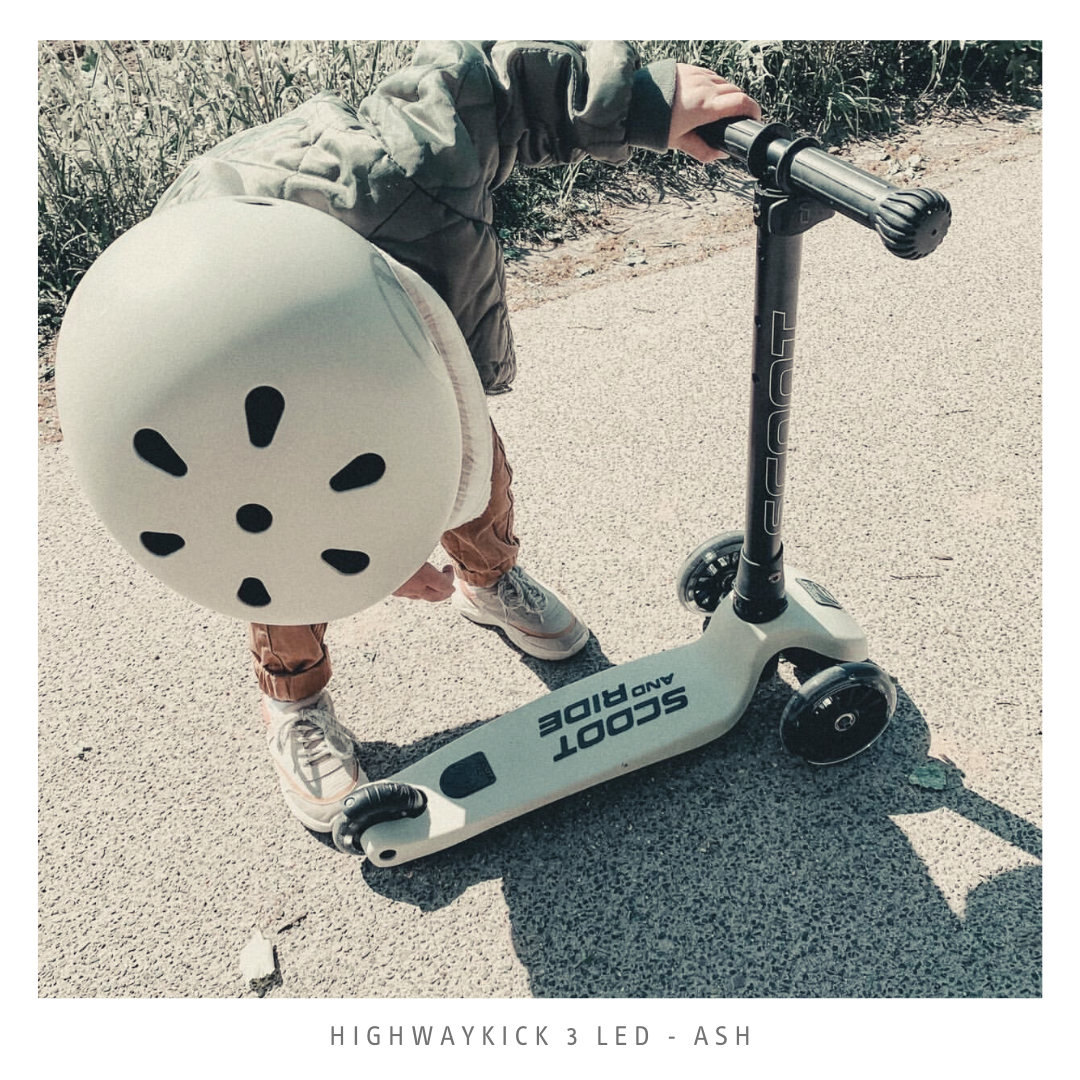 Scoot and Ride Casca de protectie pentru copii, sistem de reglare magnetic cu led, S-M, 51-55 cm, 3 ani+, Ash, Scoot Ride