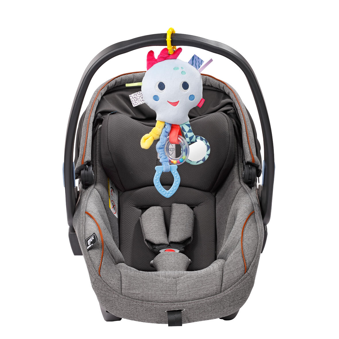 - Prinderea jucariei: ataseaza cu grija inelul de copertina caruciorului sau marginea patutului, asigura-te ca acesta este fixat in mod sigur si ca jucaria este suspendata in mod corespunzator