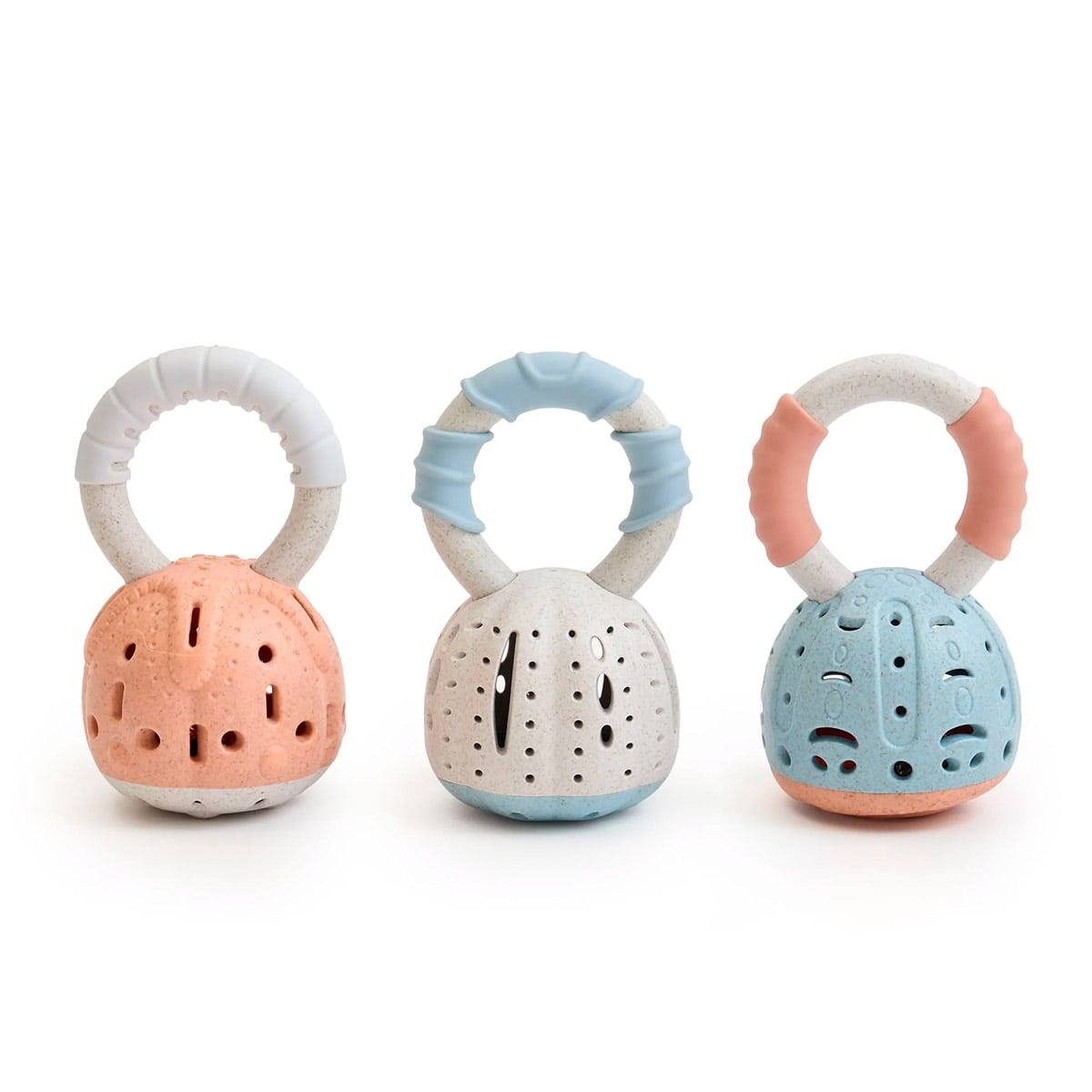 • Setul include 3 clopotei de mana fabricati din Poly+, un material compozit fabricat din 30% mai putin plastic si conceput pentru a rezista la ani de joaca in interior si in exterior.