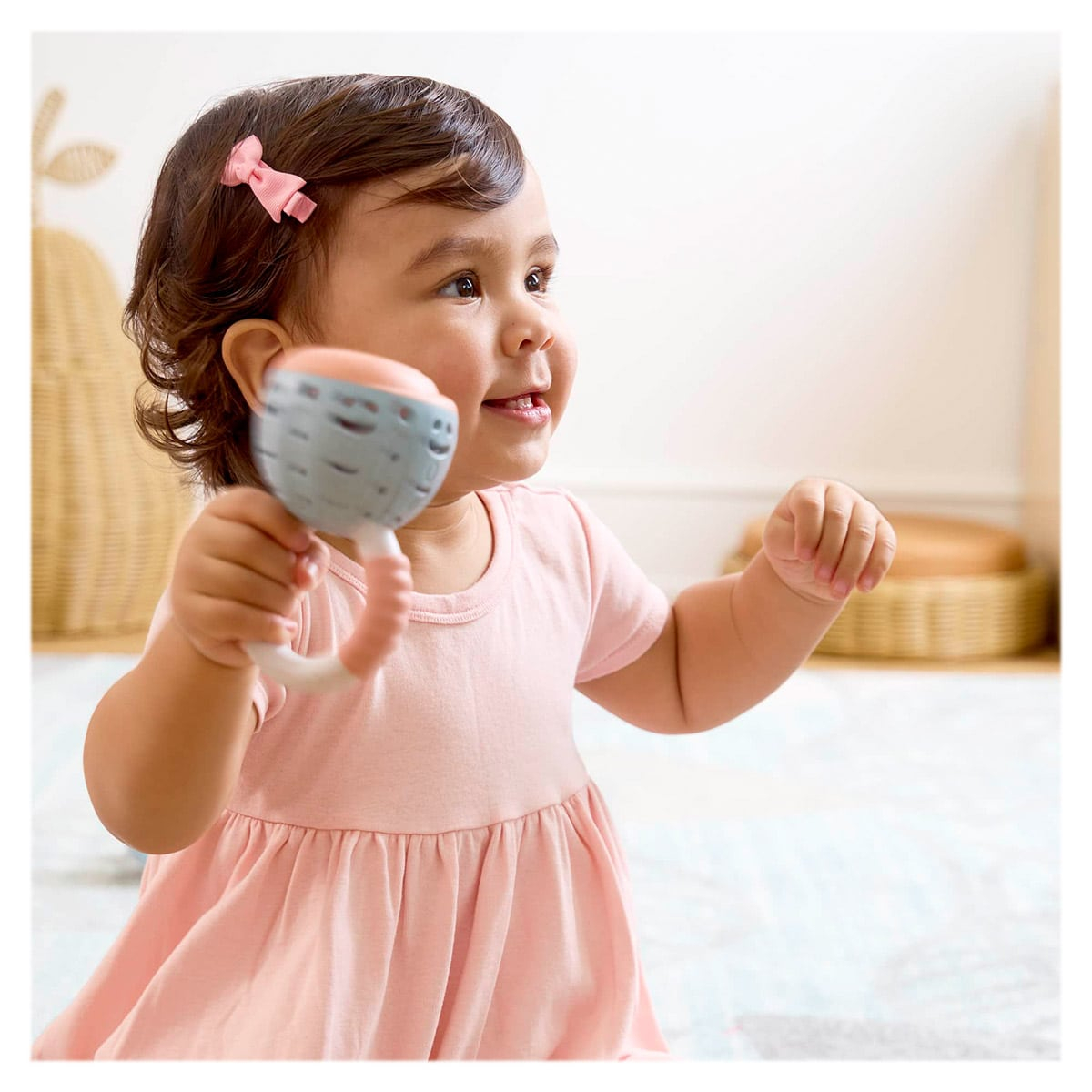 • Inspirate de formele si modelele scoicilor, fiecare clopotel prezinta tonuri pastelate, detalii frumoase, elemente tactile unice si un maner usor de prins de catre mainile mici ale copiilor.