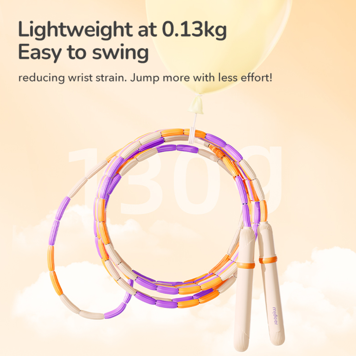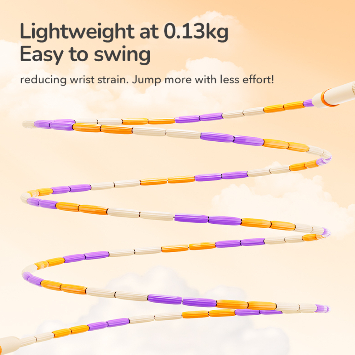 * Efort redus: Greutatea de numai 130g protejeaza incheieturile mici si permite rotirea corzii cu un minim de efort muscular.